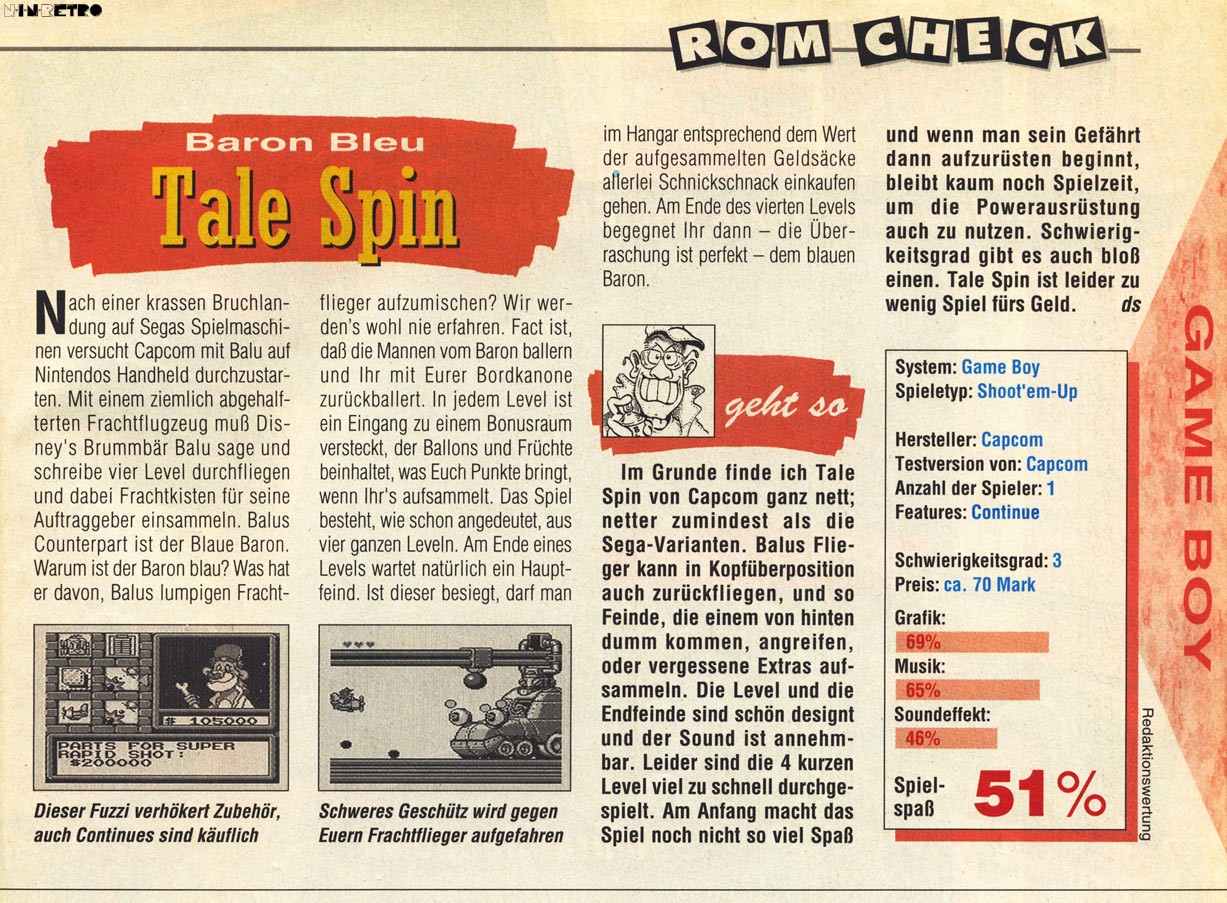 Spiele die ebenfalls dem "Disney\'s TaleSpin"-Franchise angehören: