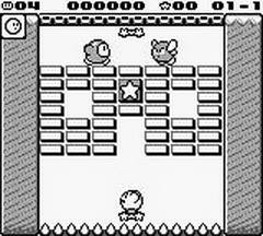 It's a breakaway bash in this wild new Kirby game of Block Ball! By destroying the blocks on the screen, you clear stages and obtain powers that help in your final confrontation with King Dedede. Paddles on all four sides of the screen make this an intense four-way action contest. Your quick reactions, and your careful use of Kirby's powers will determine your ultimate fate!