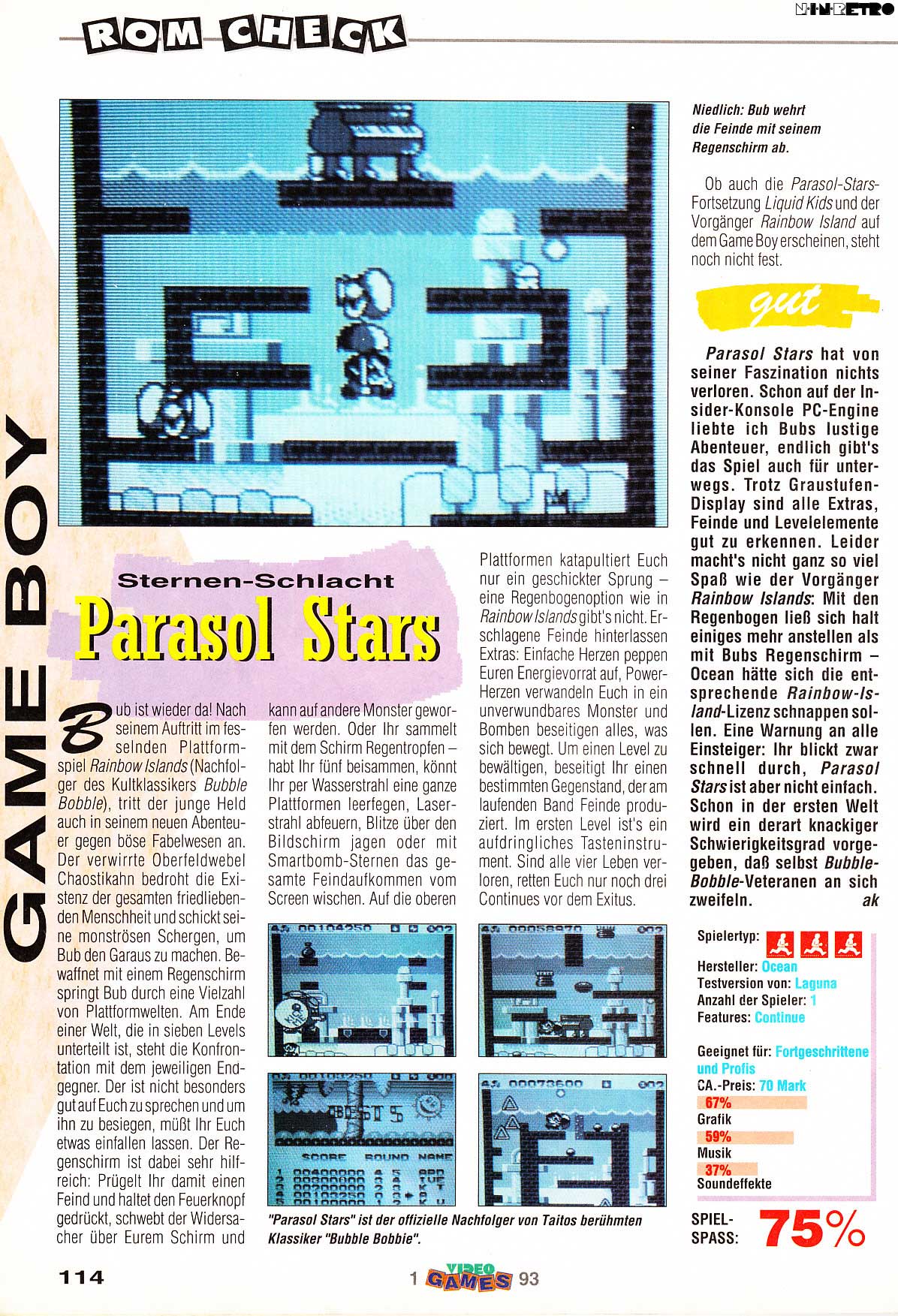 Use four kinds of elements - Fire, Water, Lightning and Star - to overcome wave upon wave of nasties bent on ending your quest to rid the universe of the evil mastermind Chaostikhan! Whether you play alone or with a friend, stay alert... Your only hope of reaching the final showdown is to unlock the secret of PARASOL STARS.