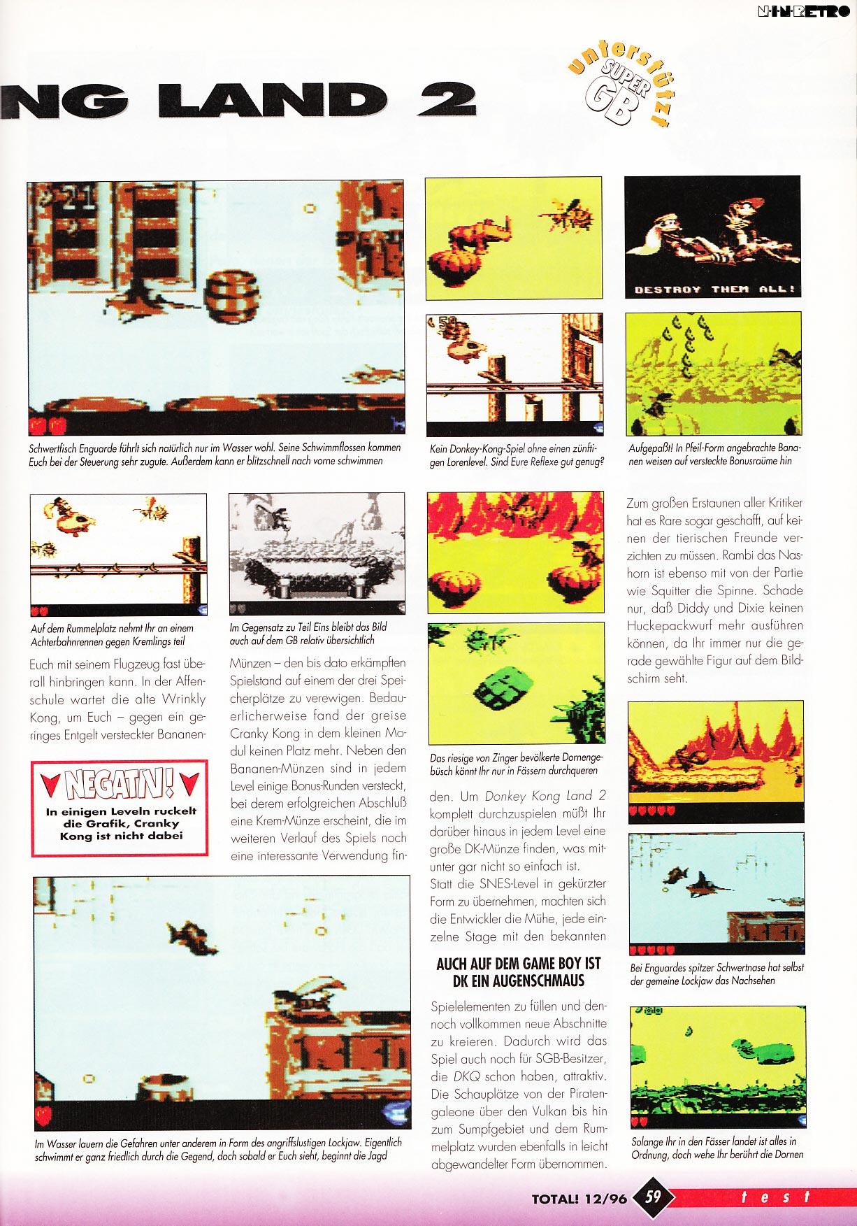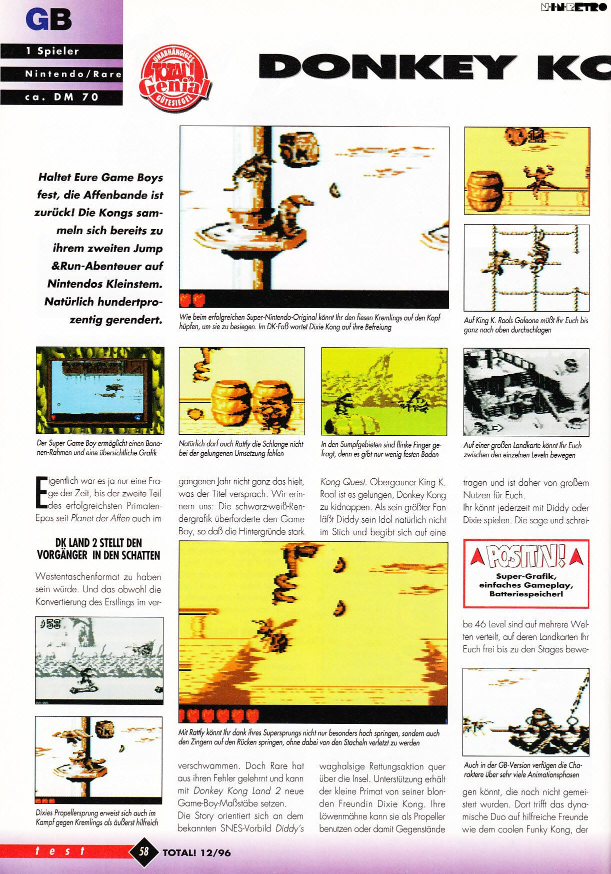 Es war einmal vor langer Zeit, als ich dieses Spiel bekam, Jahre später dann die SNES-Version (*in Erinnerungen schwelg*). Auf dem alten Schwarzweißen machen Diddy und Dixie eine sehr gute Figur, das Spiel wurde wirklich ordentlich umgesetzt.