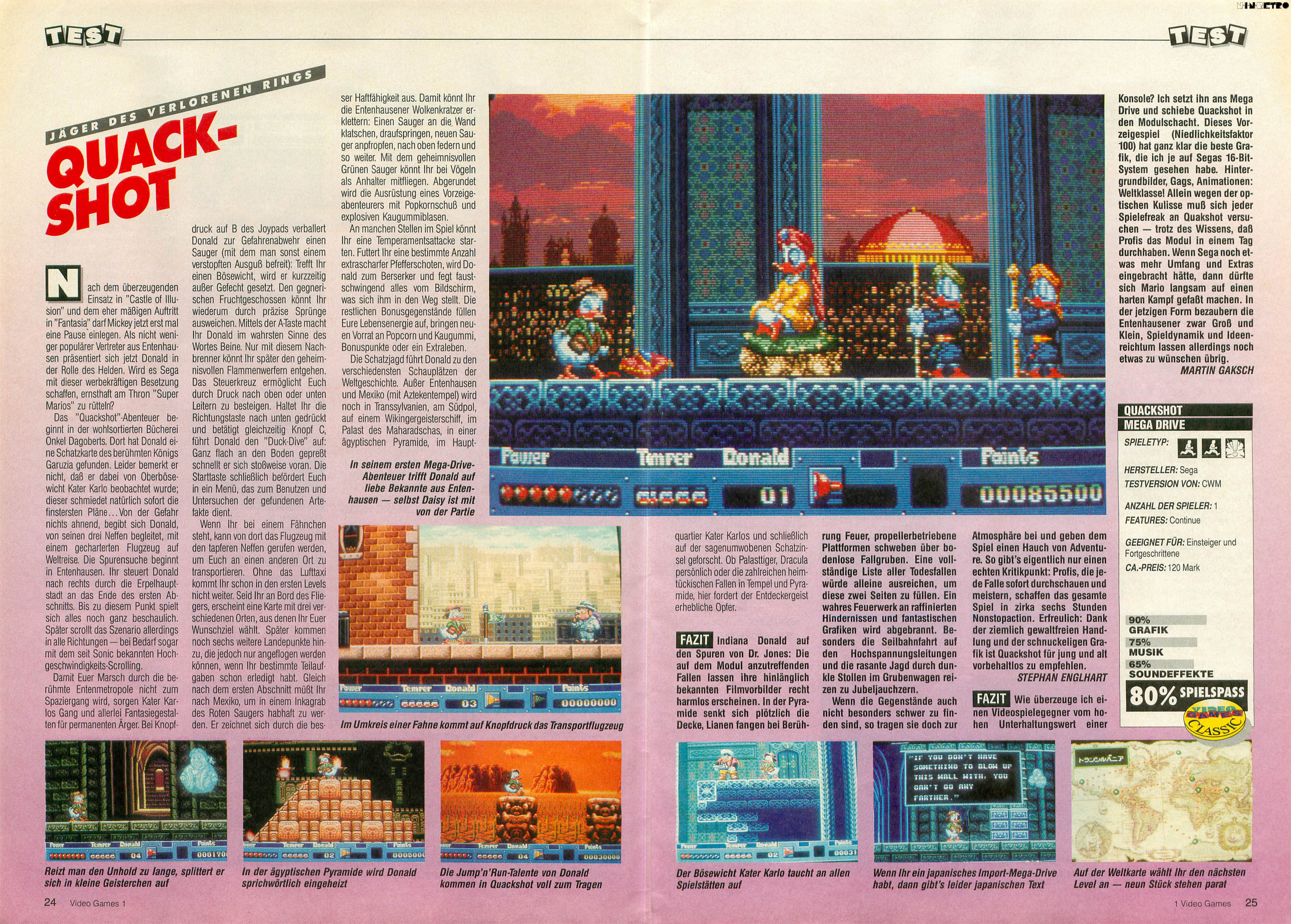 "Quackshot" ist ideal für alle, die noch nie ein Action-Adventure gespielt haben, weil die Rätsel ziemlich einfach sind, das Spiel aber insgesamt durch diese Rätseleinlagen noch interessanter wird als z.B. "Castle Of Illusion". Beim ersten Antesten gefiel mir "Quackshot" nicht besonders, mittlerweile gehört es aber zu meinen Favoriten!