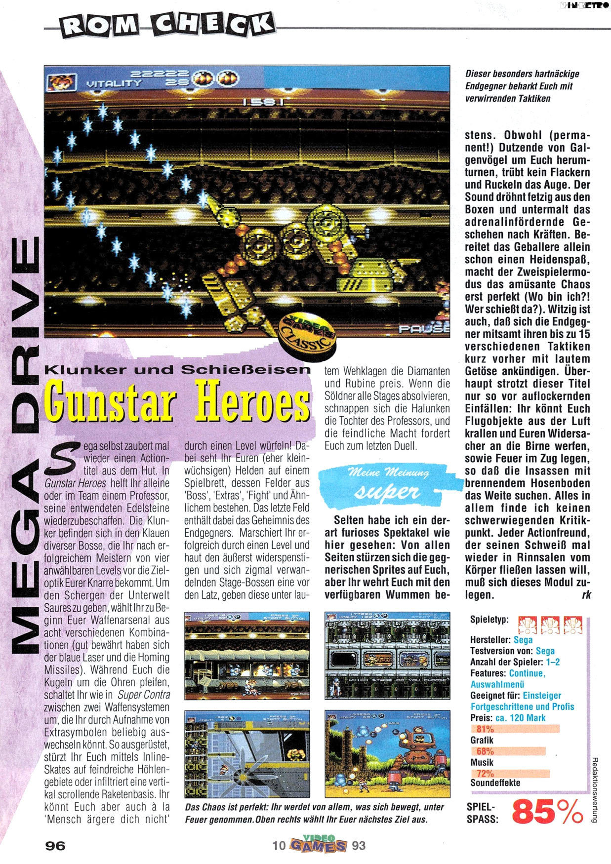 Ob es jetzt besser ist als Contra, darüber lässt sich streiten. Definitiv ist Gunstar Heroes aber genauso gut und für jeden Genre Fan und Mega Drive Besitzer ein Muss.