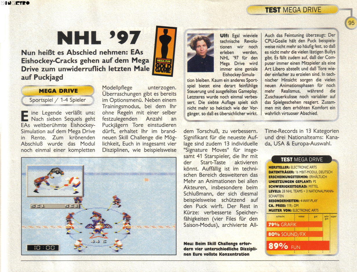 In meiner Sammlung tronen NHL 92, 93, 95, 96, 97. Für die 94er Variante gibts den Mega CD.
