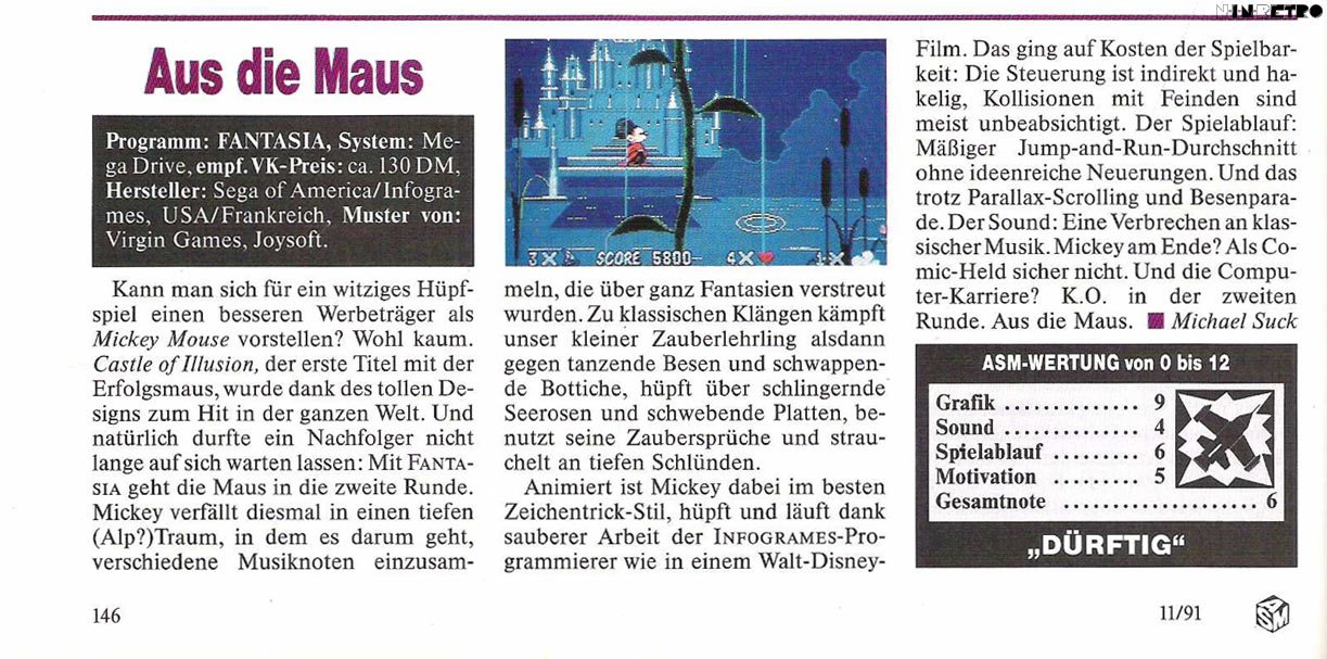 Leider hatte ich vorher in keiner Videospielzeitschrift einen Fantasiatest gelesen... Tja es war halt eine andere Zeit.