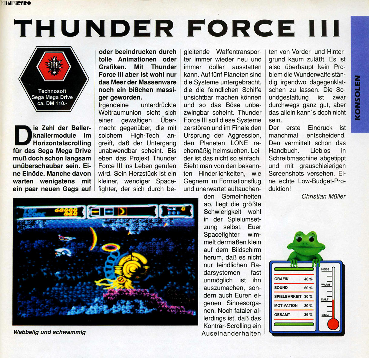 36%? Was hat der gute Mann bloß genommen? TF III ist einer der besten Mega Drive-Shooter, wer das nicht erkennt sollte vielleicht den Beruf wechseln.  8(