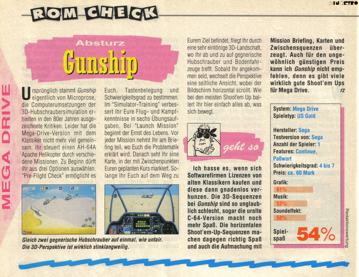 Gunship puts you in control of the US Army's sophisticated helicopter, the Apache AH-64A. Don your helmet and grab the controls, for you must fight your way through four theatres of combat around the world in which the enemy are determined to make sure you fail!