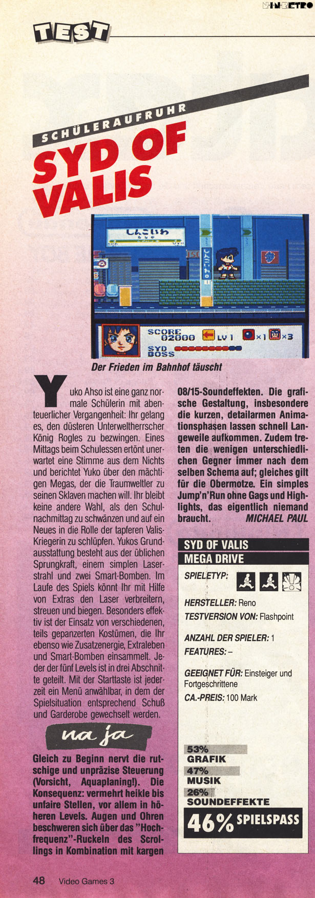 Bei diesem Spiel handelt es sich um ein Remake von "Valis II". Das "SD" im jap. Titel steht für "super deformed", da die Charaktere im Original andere Proportionen aufweisen und auf dem Mega Drive deshalb etwas deformiert wirken.