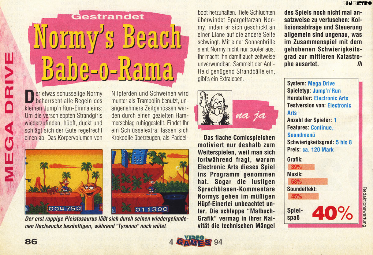 Hier stimme ich dem Urteil der Video Games zu. Das Teil ist dermaßen schal und von der Stange, daß ich mich ebenfalls frage, was die sich Electronic Arts anno 1994 noch davon versprochen haben, wo es ja auf keiner bekannten Lizenz beruht.