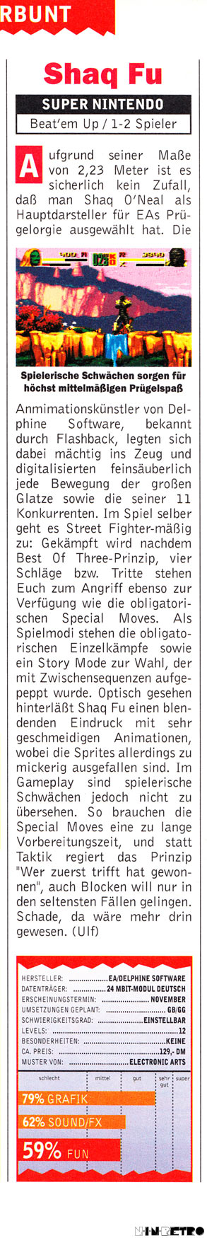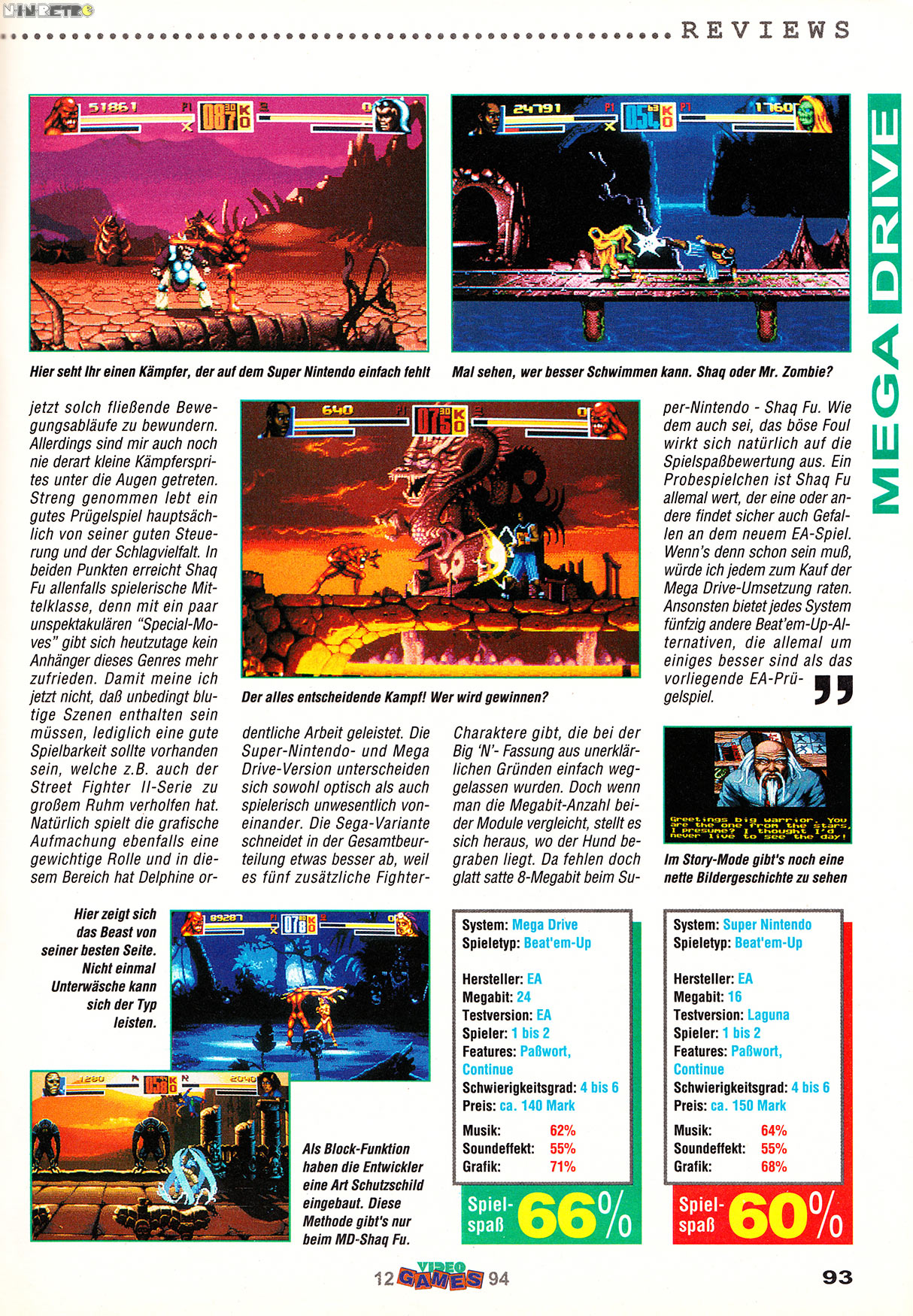 Beim Testbericht der Mega Fun ist zwar "Super Nintendo" als System angegeben, eine Ausgabe später wird aber im "richtigen" SNES-Review erwähnt, dass es sich in Ausgabe 12/94 in Wirklichkeit um die Fassung für das Mega Drive gehandelt hat. Von daher nicht darüber wundern wieso hier ein (angeblicher) SNES-Test zu finden ist.