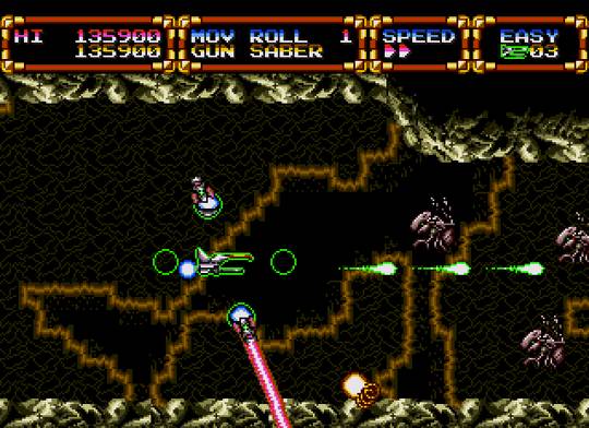 Im Gegensatz zu den Konkurrenzprodukten Gynoug und Hellfire auf dem eigenen Haus bietet Gley Lancer deutlich mehr Spielspaß.