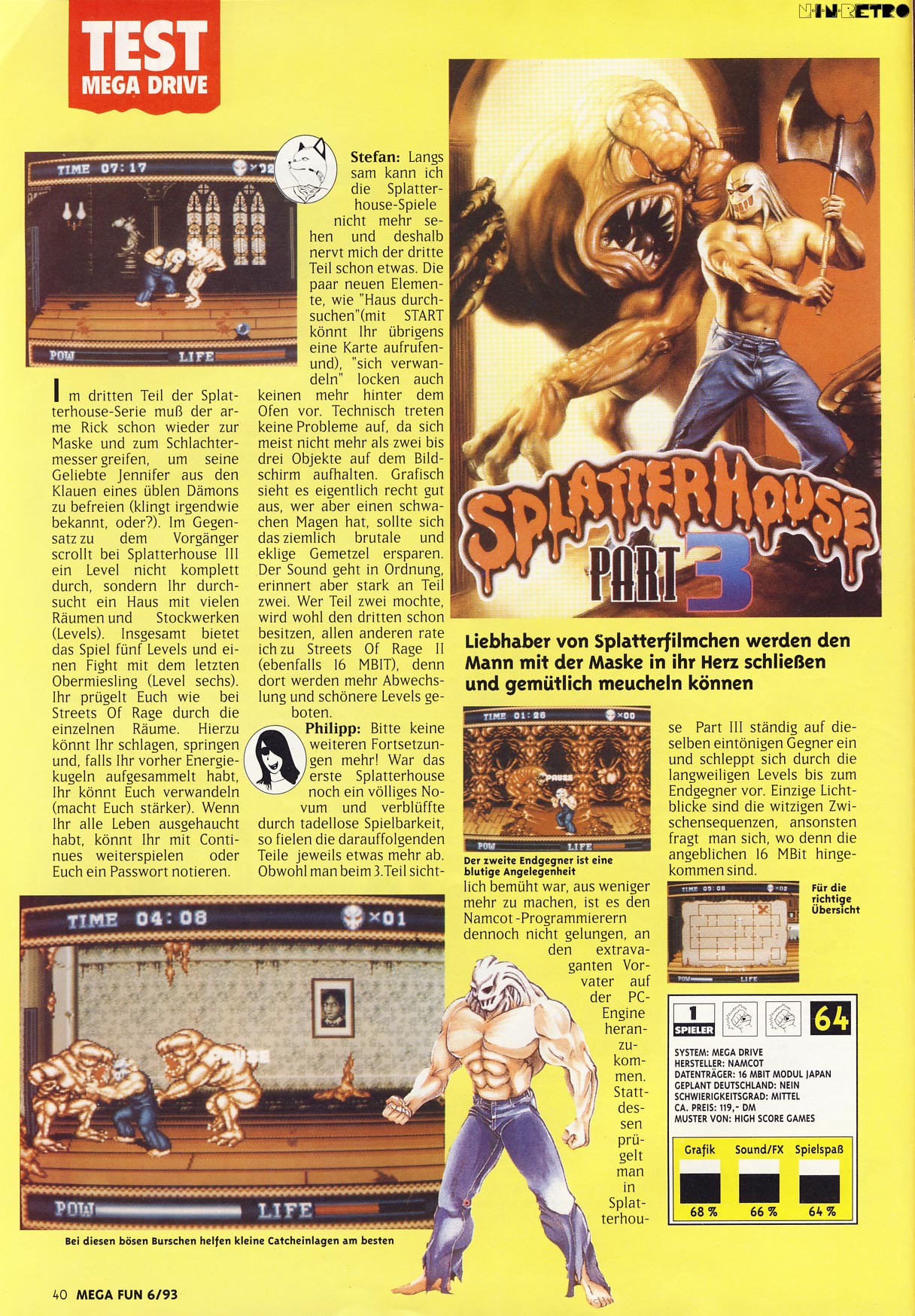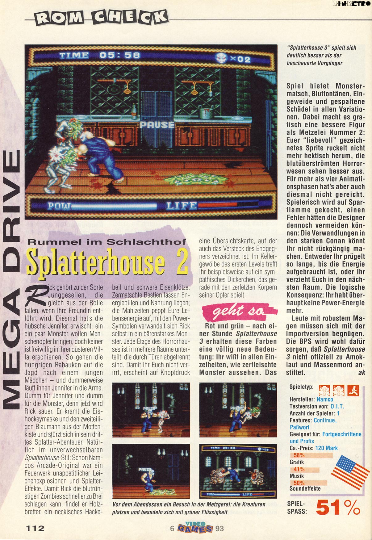 Ich hatte ganz vergessen zu erwähnen, dass die Überschrift "Splatterhouse 2" im Testbericht der Video Games fehlerhaft ist, wie man im Fazit-Teil des Reviews gleich im ersten Satz lesen kann, wurde da Teil 3 getestet.