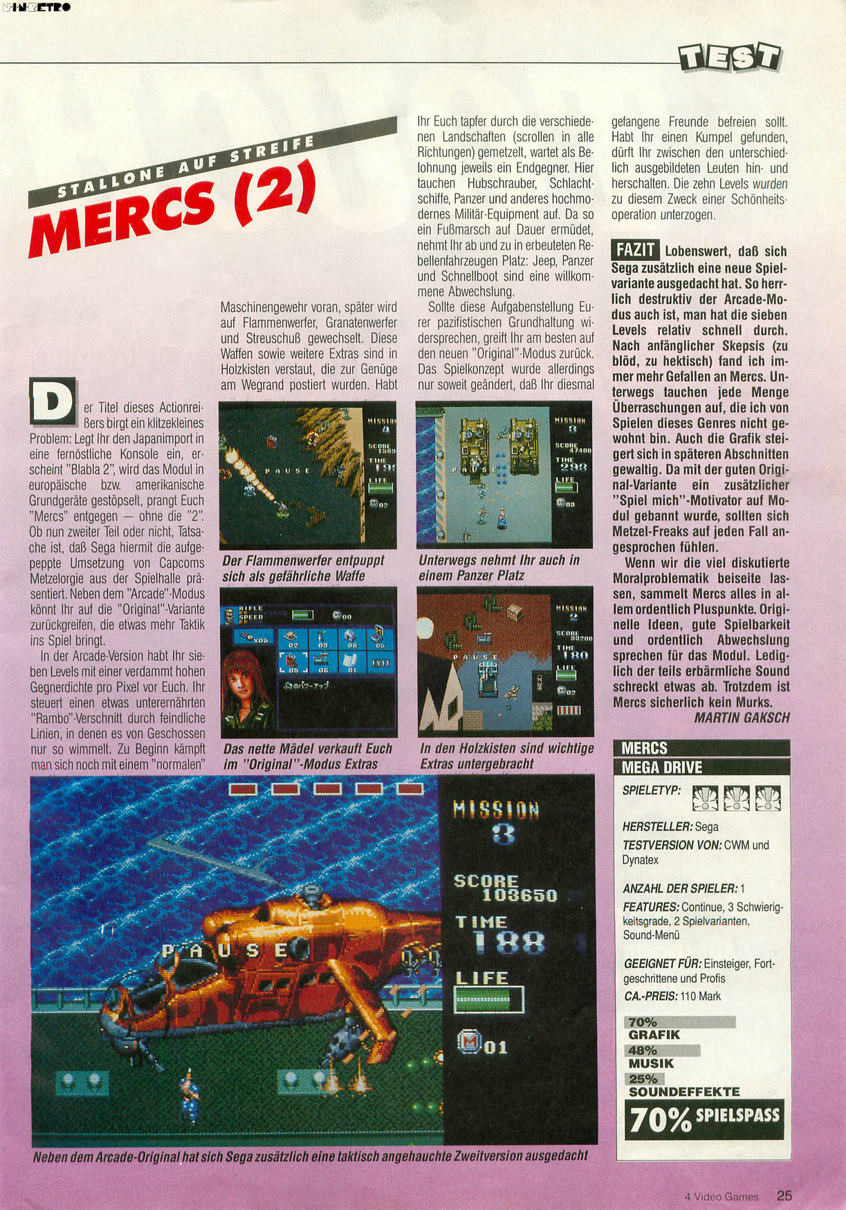 Ach, wieder mal ein verlogener Moralapostel Test. Diesmal halt die Play Time. Die Arcade Umsetzung von Mercs war recht gut, wenn ich auch Rambo III MD besser fand.