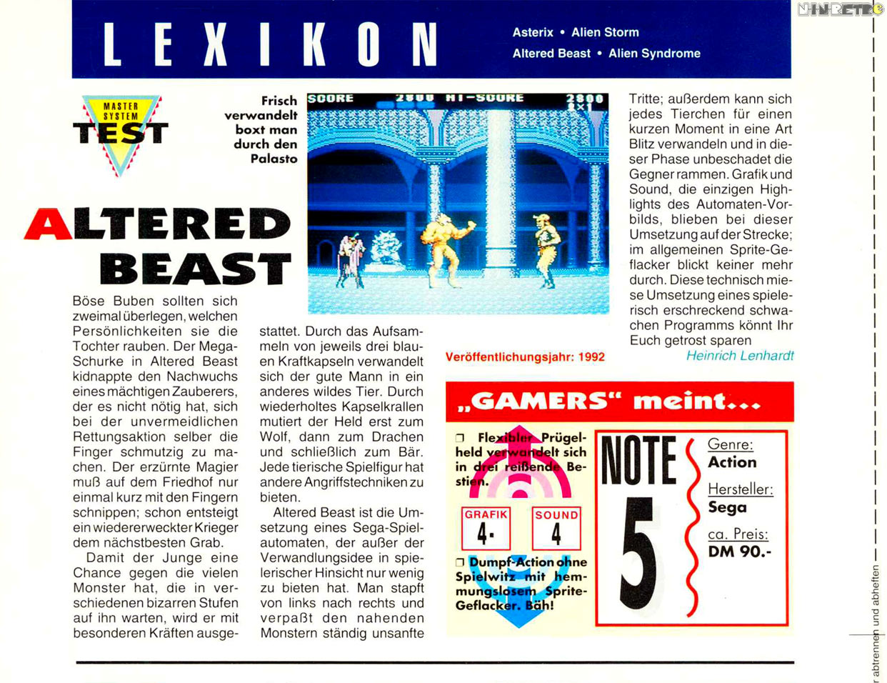 Spiele die ebenfalls dem "Altered Beast"-Franchise angehören: