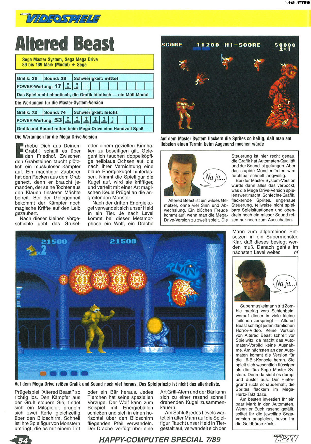 In erbarmungslosen Schlachten gegen die gefährlichsten Gegner aus der Unterwelt wird um die Befreiung der schönen Athena, der entführten Tochter des Zeus, gekämpft. Du erlangst die Mächte des "Altered Beast". Du kannst Dich in immer stärkere Lebewesen verwandeln, um das Böse, das hinter jeder Ecke lauert, zu vernichten!