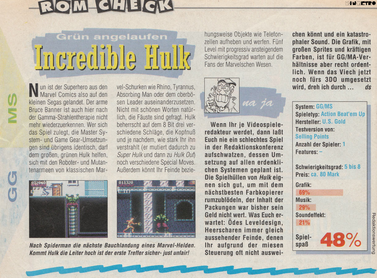 Eine neue Herausforderung für The Incredible Hulk. Man will ihn aus dem Weg räumen, bevor die geplante Invasion auf der Erde beginnt. Jetzt geht's für Hulk um die Wurst! Tyrannus, Absorbing Man, Abomination, Rhino und The Leader freuen sich schon darauf, Hulk zum Frühstück zu verspeisen. Fünf spannende Level mit drei Schwierigkeitsstufen. Wohl bekommt's!