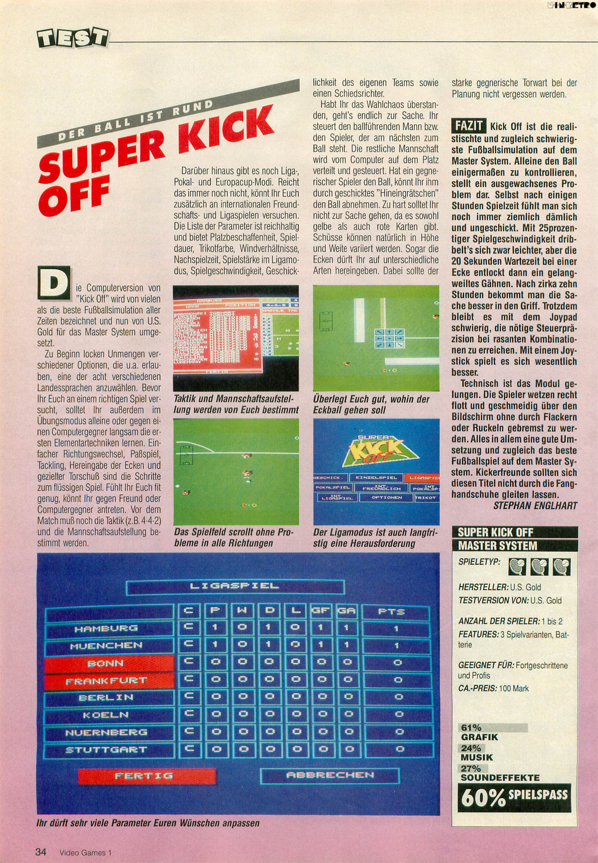 Super Kick Off bringt Ihnen die Spannung und Atmosphäre echter Fußball-Action. Mit dieser Simulation werden Kondition, Balltechnik, Schnelligkeit und Fußballtalent äußerst realistisch auf die Probe gestellt.