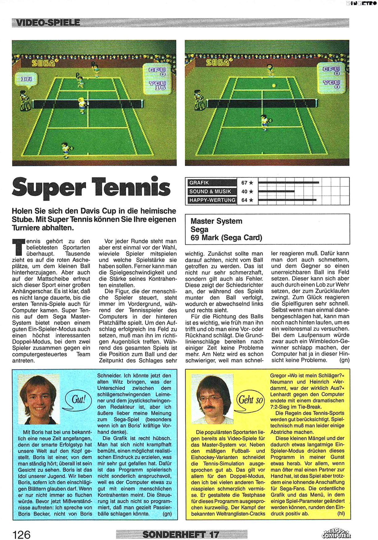 Lob! Volley! Smash! It's deuce and you've got one set to go for the match. All the details are here, bringing realistic action and strategy onto your home court.
