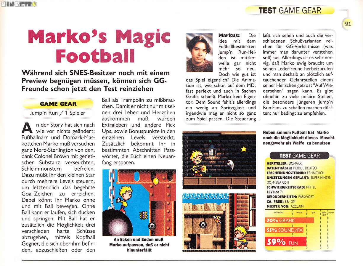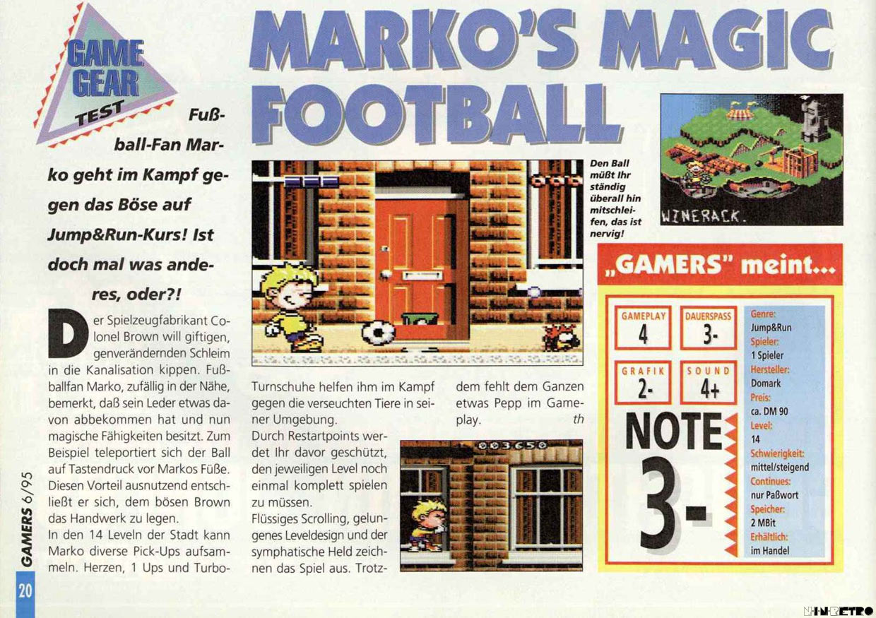 Willkommen in der Welt von Marko, einer Welt des absoluten Cartoon-Wahnsinns. Steig ein in diese irre Mischung aus Fußballtricks und Plattform-Action, die dir Spielspaß der Spitzenklasse bietet. Dazu kommen noch die unglaublichen Grafik-Effekte, die es je gab. Und alles zusammen ergibt - "Marko's Magic Football", den Live-Cartoon zum Spielen.