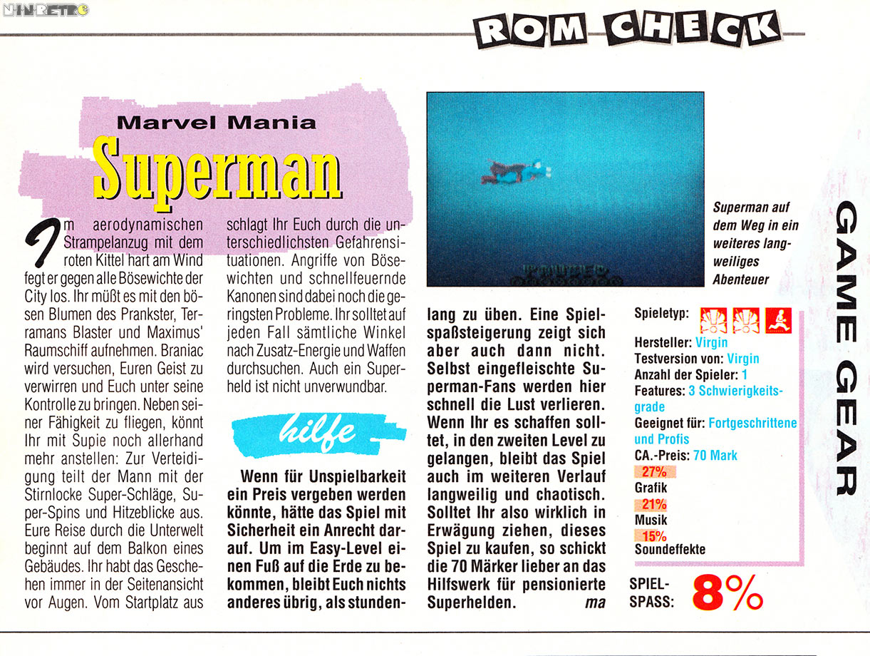 Sollte ihr also wirklich in Erwägung ziehen, dieses Spiel zu Kaufen, so schickt die 70 Mark lieber an das Hilfswerk für Pensionierte Superhalden