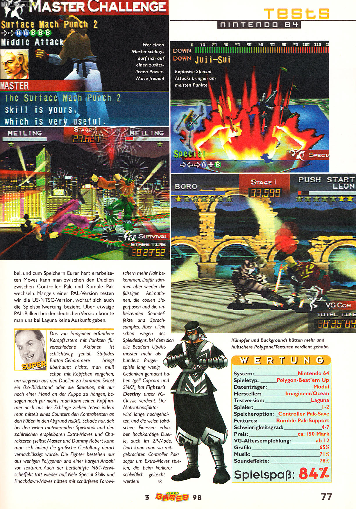 Hmm ist das Spiel wirklich als Beat Em Up Game zu empfehlen? Weil ich denke komischerweise an Tekken wenn ich das sehe und hätte gern ne objektive Meinung sofern es geht für denjenigen, der es mal gespielt hat. Da ich sonst außer Smash Bros auf dem N64 und noch Fighting Force und Flying Dragon als nette Alternative finde würde ich mich über ne Meinung freuen