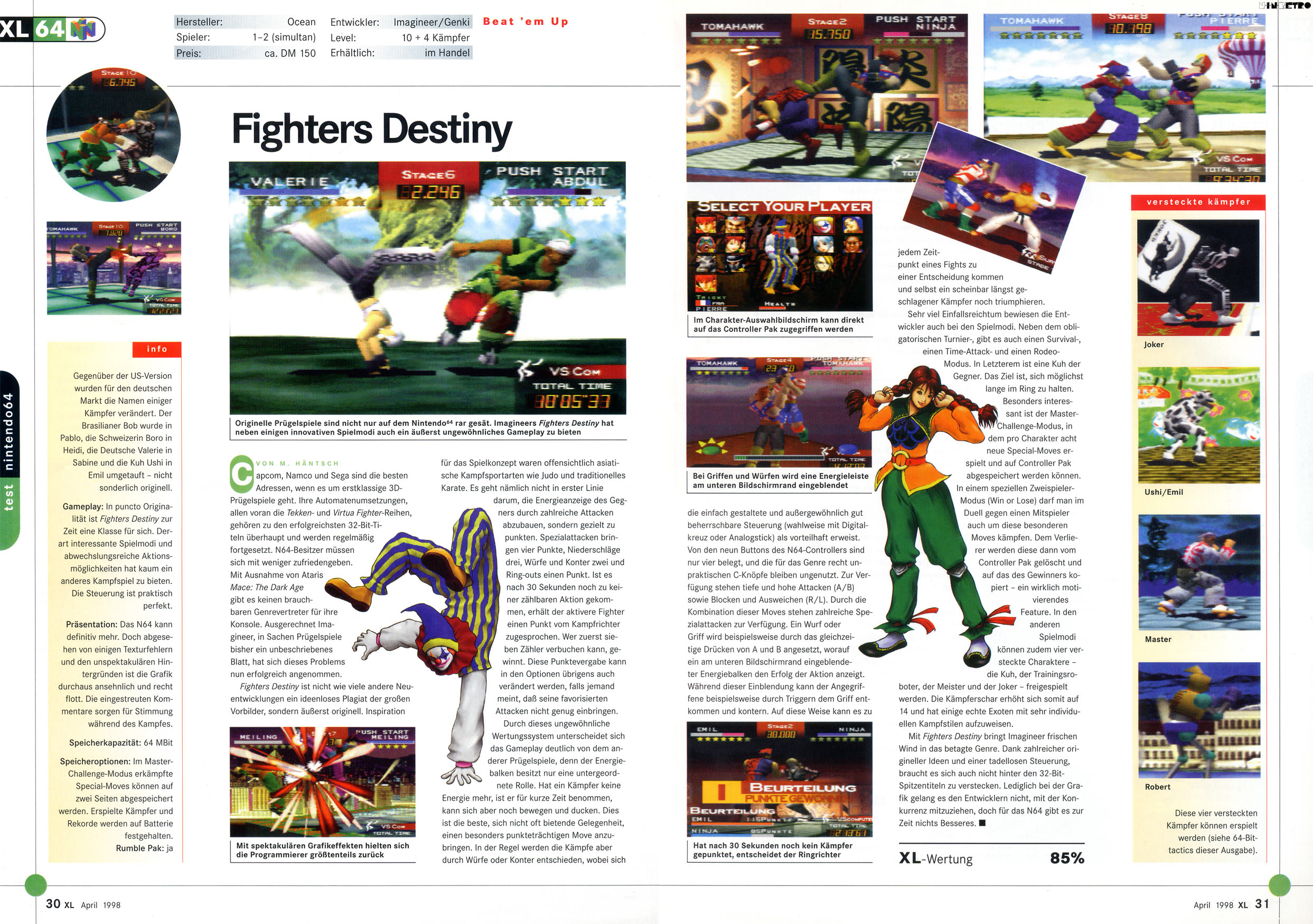 Defeat the Master of the Fight in a head-on bout of power and skill. Fighters Destiny demands everything you have, everything you are and throws it right back at you in truly amazing, unstopable 3D action. Prepare to fight every step of the way as you master the moves and unlock the secrets to fulfil your ultimate destiny...