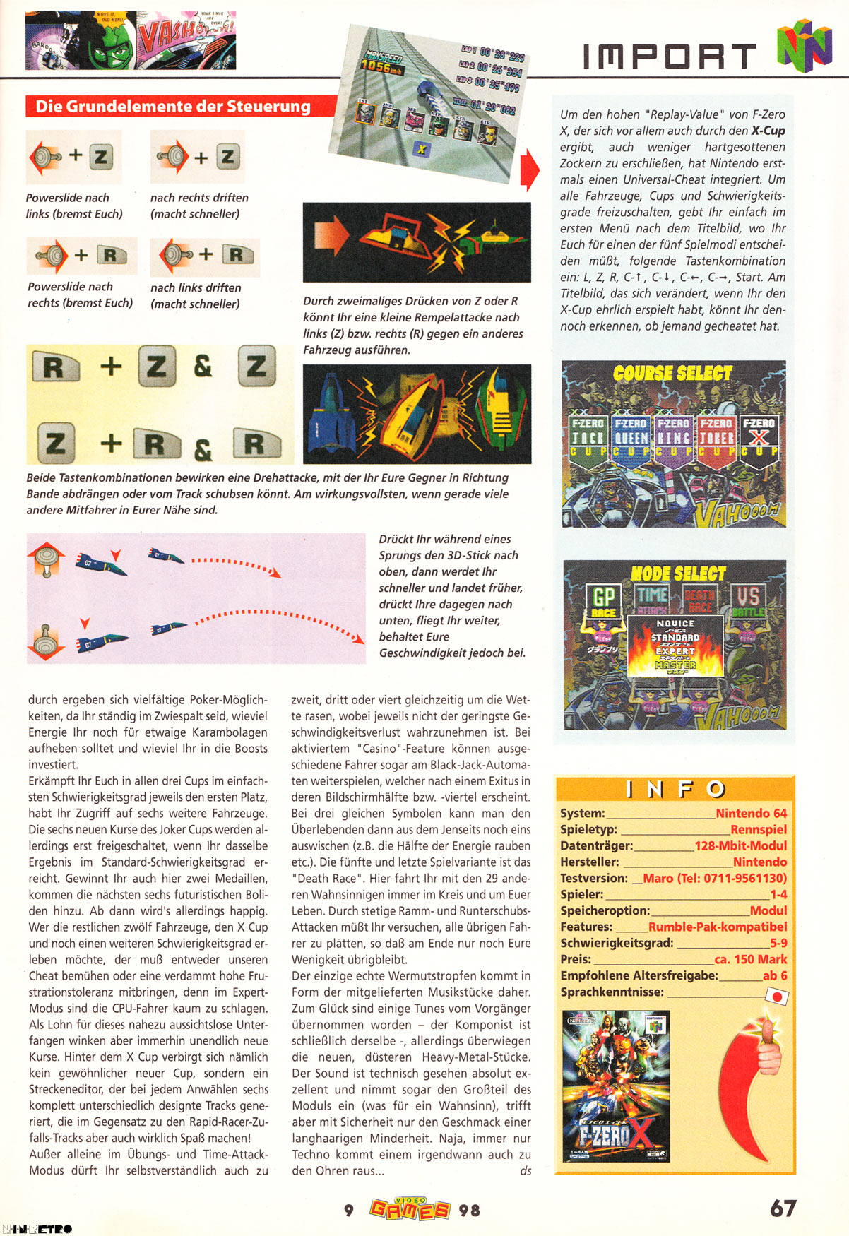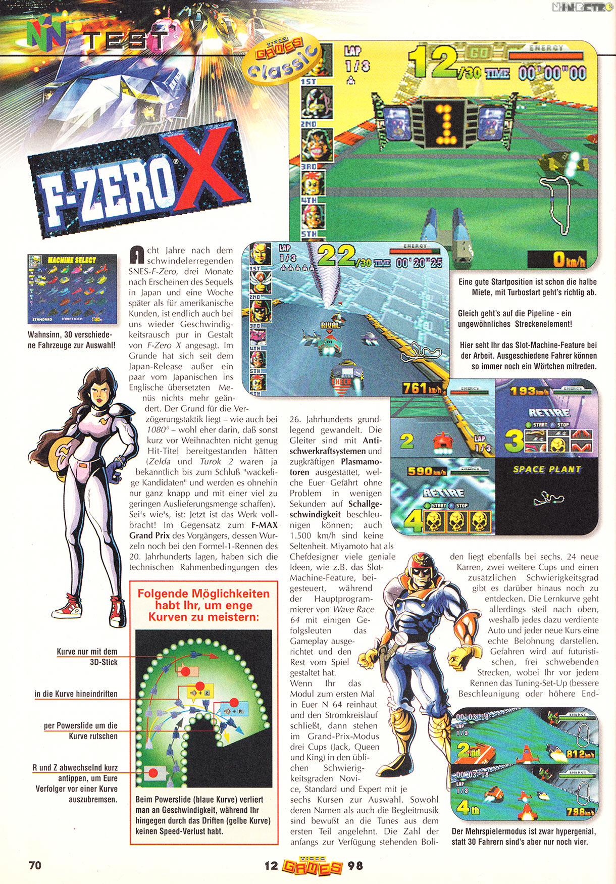 Also mir macht F-Zero X Spaß. Besonders fetzig finde ich im Nachhinein die trashige 80iger-Musik. Erinnert mich immer an Kult-Serien wie M.A.S.K.