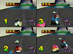 Der Mehrspieler-Modus ist nicht aufwändig, aber zu viert absolut in Ordnung, da die Framerate stimmt und wer es mit Gleichgesinnten zockt, kommt immer wieder gerne zurück. Klar: Computer-Gegner oder ein Karriere-Coop-Modus wären besser gewesen, aber da bieten ja Extreme-G (2) und wipEout 64 auch nicht viel mehr.