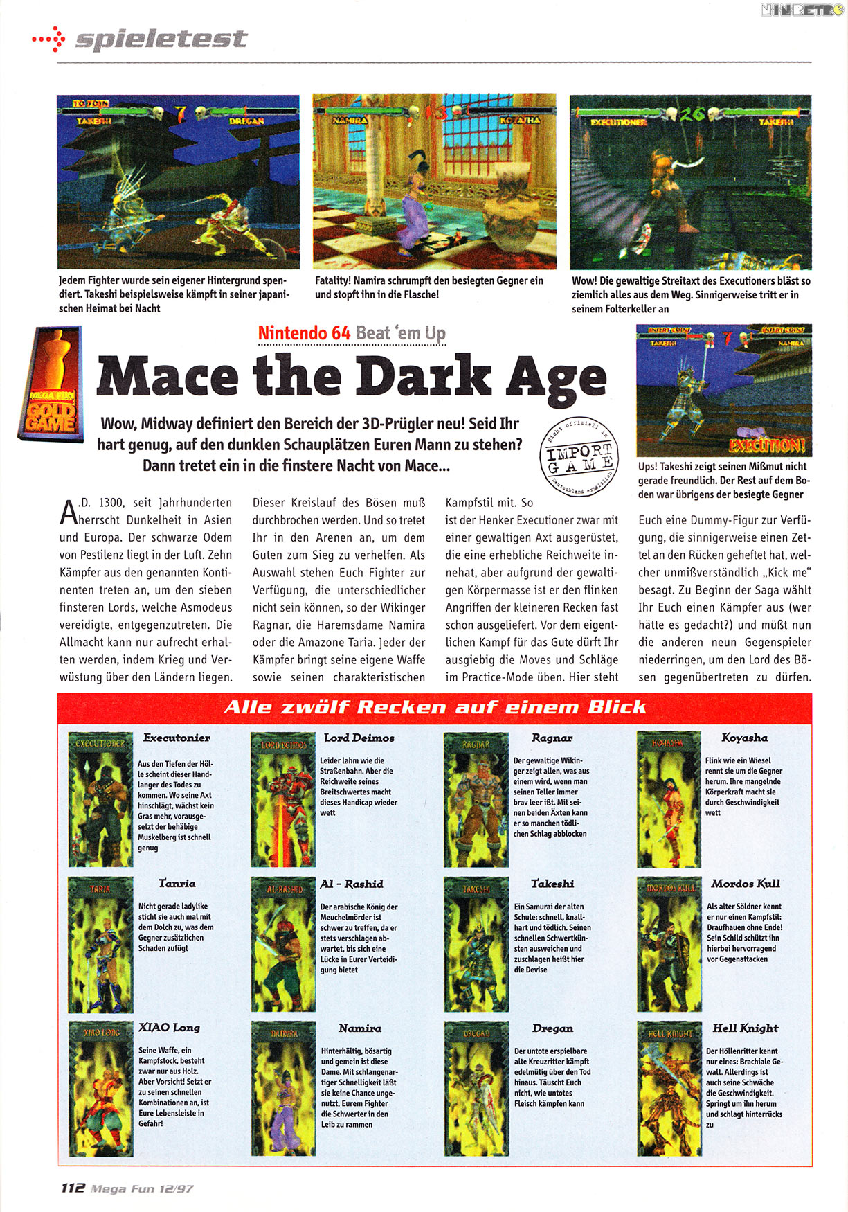 Forged in the fires of the Dark Age, Mace is the hottest 3D fighting game ever! Each medieval character wields a weapon unique to their land or origin. Their only desire, inflict serious pain!