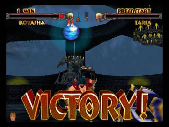 Ragnar Wins! Hhmm...aber wo sind die Kombo´s hin??? Eigentlich hatte das Spiel potential. Das Figurendesign geht in Ordnung (endlich mal ein riesen Wikinger...cooool!), die Grafik ist nicht viel schlechter als bei der Konkurenz und der Sound ist solala, geht aber in Ordnung. Die größte Schwäche ist das Gameplay. Ohne gute Kombo´s oder schöne Special-Moves macht ein Prügler einfach keinen Spaß. Es gibt Special-Moves und auch wenige Kombo´s, aber die gehen alles andere als "von der Hand". Bis man da mal einen vom Stapel läßt, ist man eher eingepennt. Glück statt Timing...das ist mal hier die Devise. Eigentlich schade.