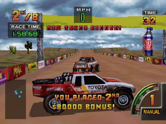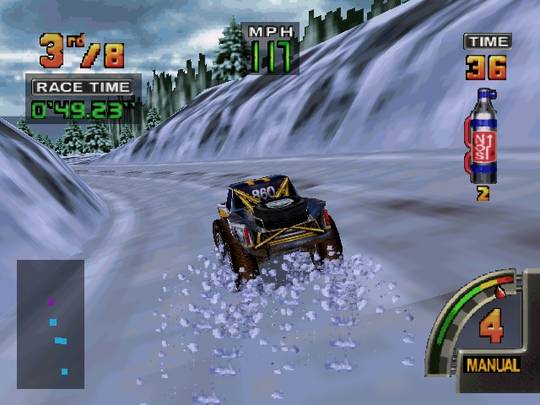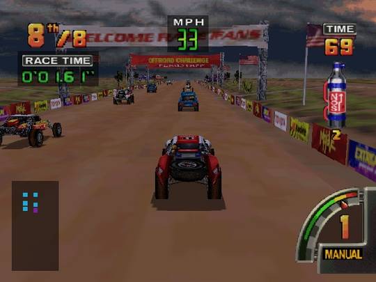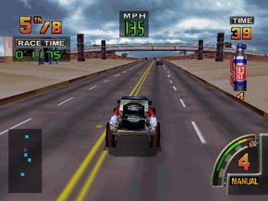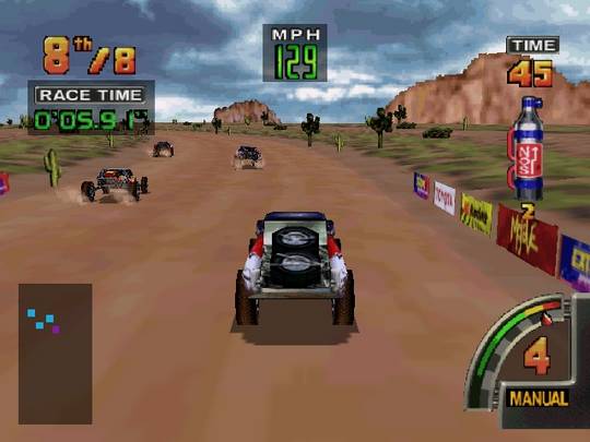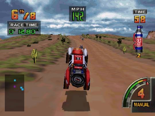 Strap yourself in and get ready to ride! Players battle the elements and each other in a race that takes them across 6 rugged courses including the Mojave Desert, Las Vegas and Pike's Peak!