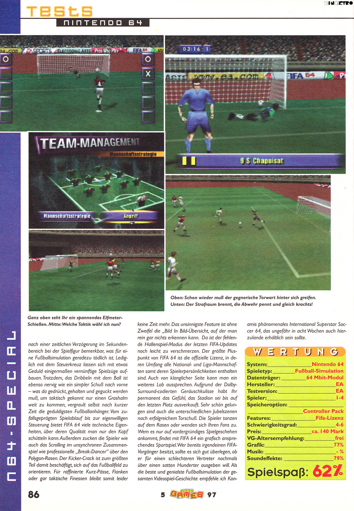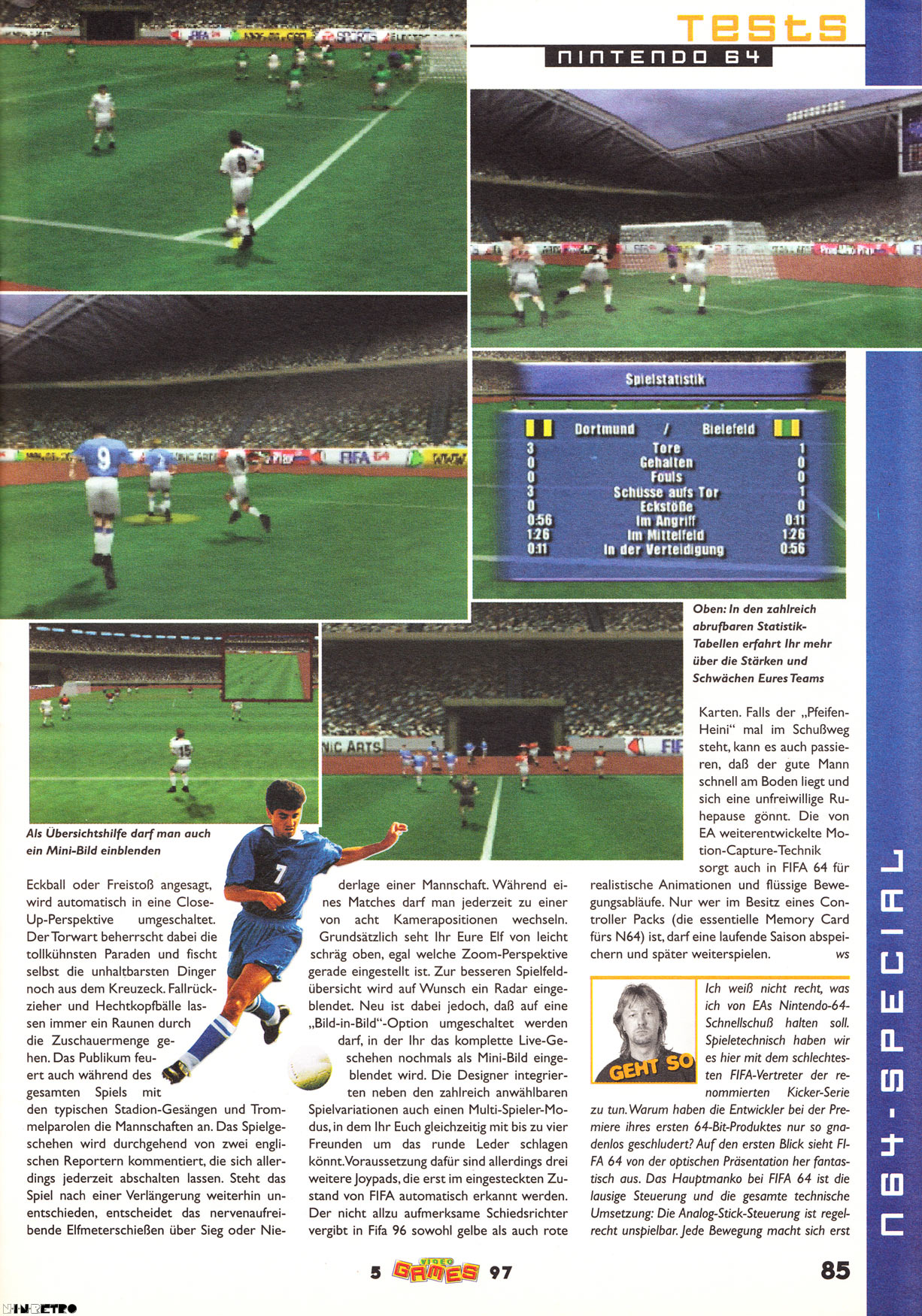 2. Die FIFA-Reihe ist eigentlich qualitativ eher im oberen Spielspaßsegment anzusiedeln und solche Negativausreißer sind selten. Da zuvor erschienene FIFA 97 für die Playstation hatte z.B. Wertungen um die 80%.