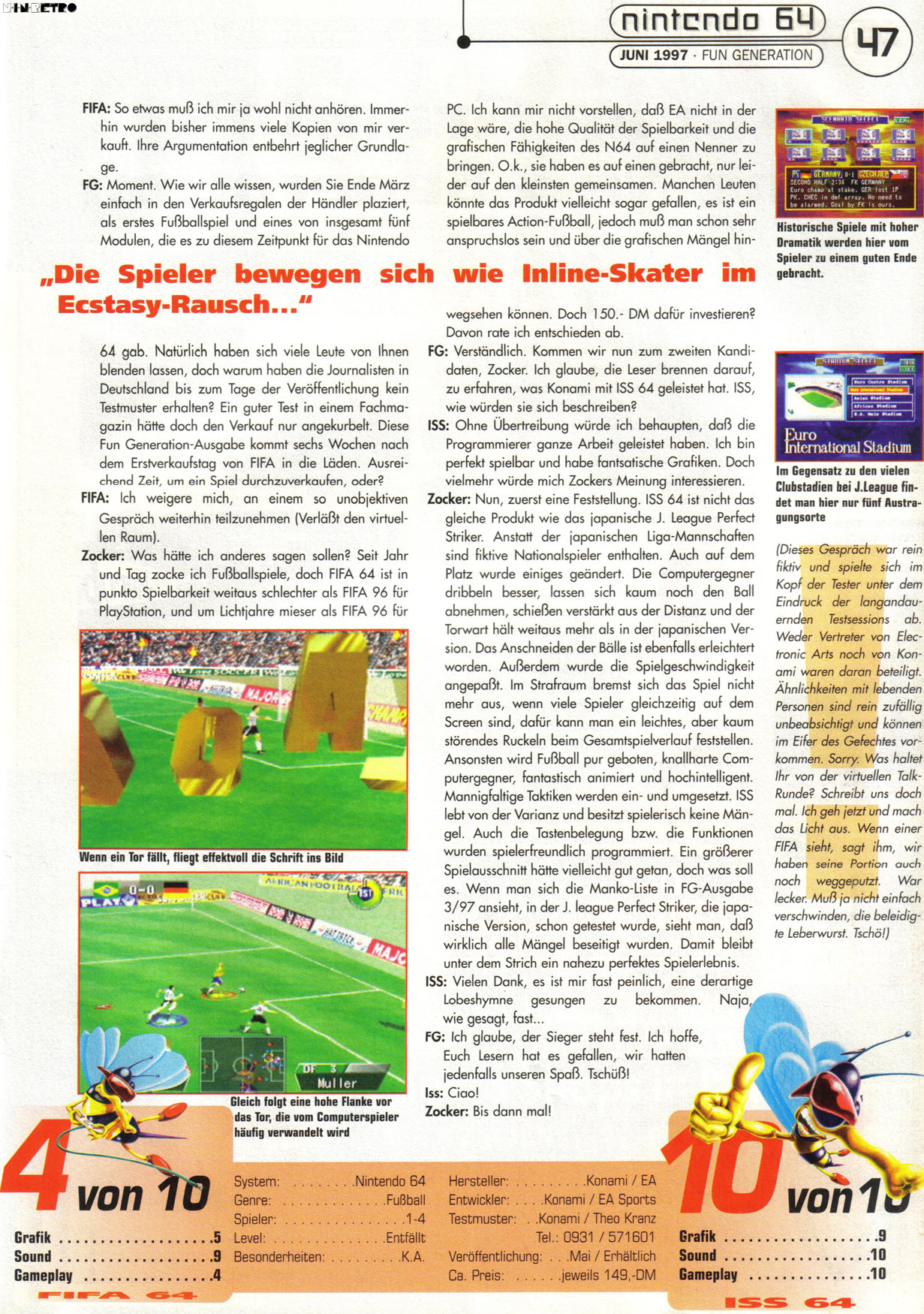 Ein gutes Fußballspiel für N64. Man kann darüber nicht beschweren.