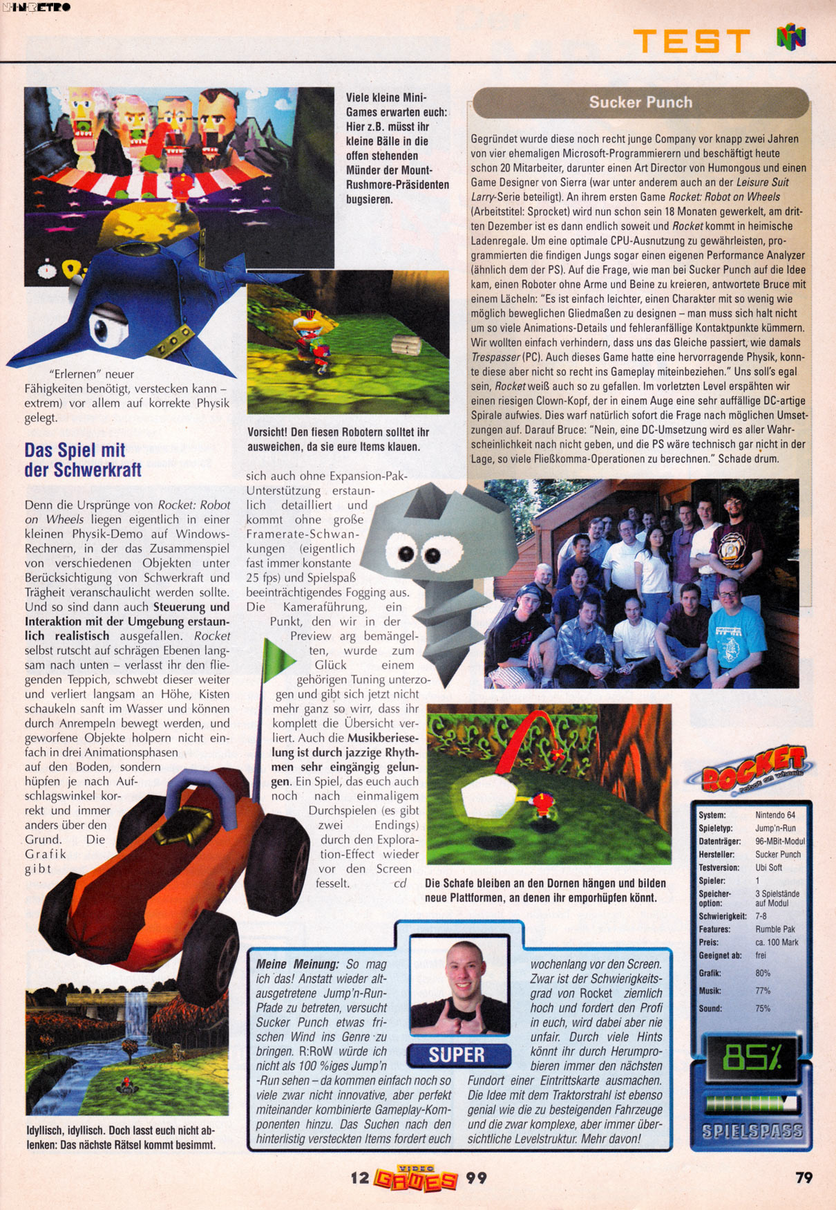 Ich würde dem Spiel eine 85% (2+) Wertung verpassen. Rocket: Robot on Wheels ist immer noch ein sehr guter 3D Plattformer der aufgrund der genannten Mängel keine 90% Wertung verdient hat oder gar 95+ wie ein Banjo. Das drumherum abseits der abwechslungsreichen Aufgaben ist dazu zu unspektakulär.