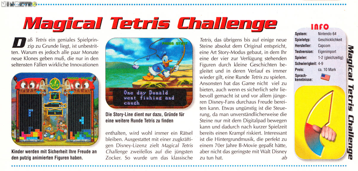 Habe ich jetzt Mal für das N64 geholt. Macht echt Spaß, ist halt Tetris, altert aber eben nicht. Und kommt ohne 3D Gedöns aus.