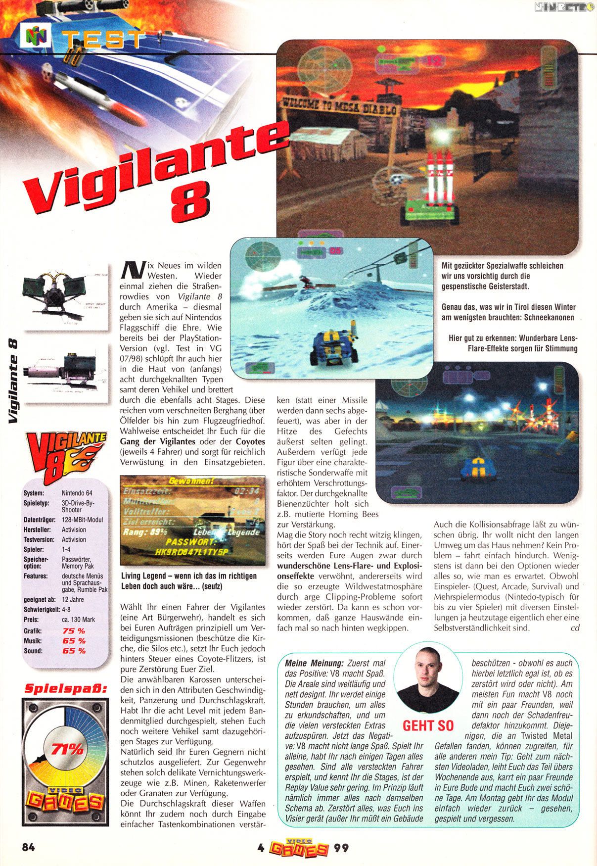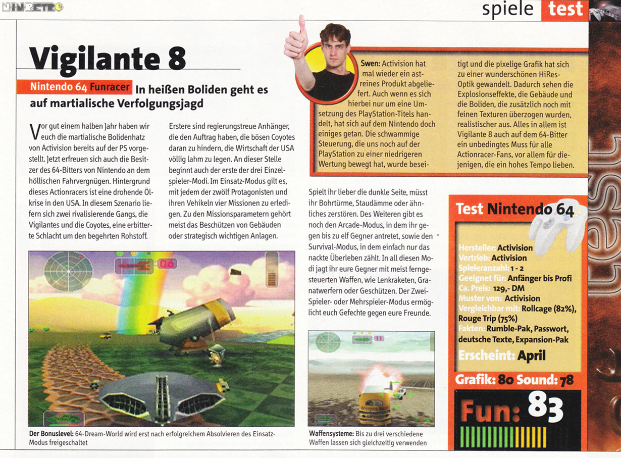 Fazit: Ein für den N64 technisches und spielerisches Highlight mit einer tatelosen Grafik, die nicht - wie manch andere Vertreter - einen, heutzutage auf dem Großbild-TV, elepischen Anfall auslösen lassen. Für mich eine 1-