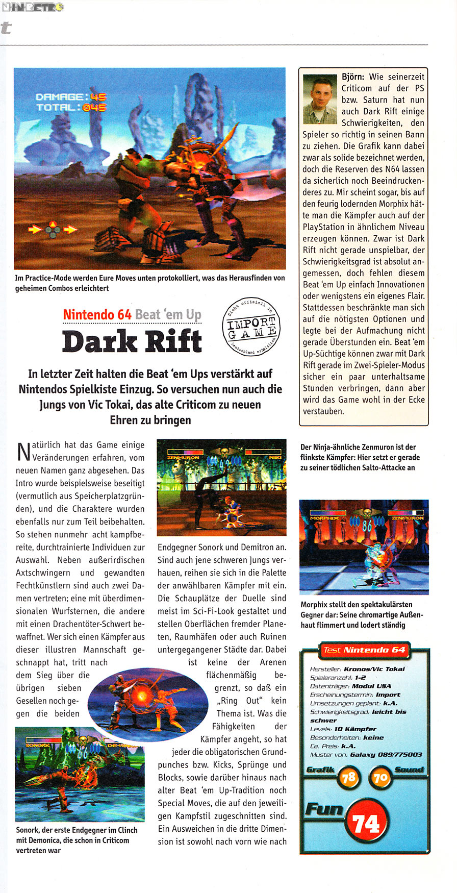 DarkRift gibt es aber nur für N64 und PC. Die MegaFun hat aber im allgemeinen keine PC-Spiele getestet, oder?