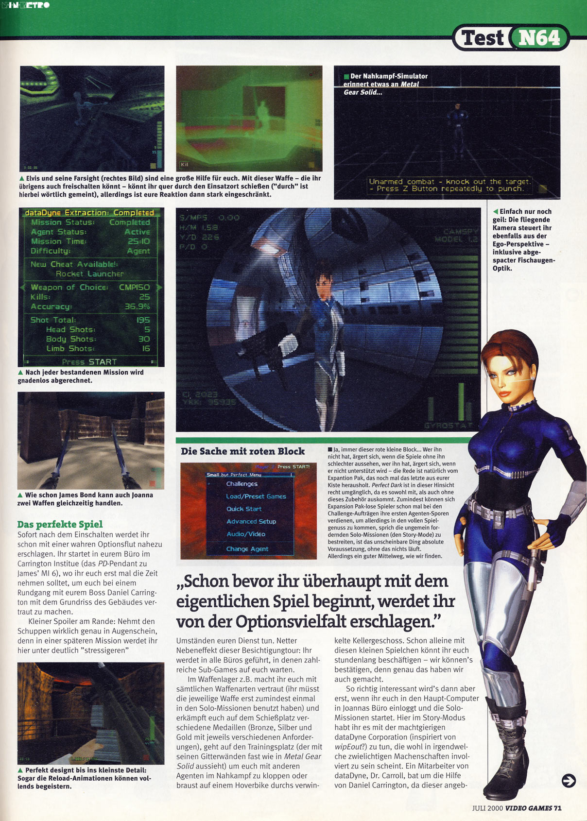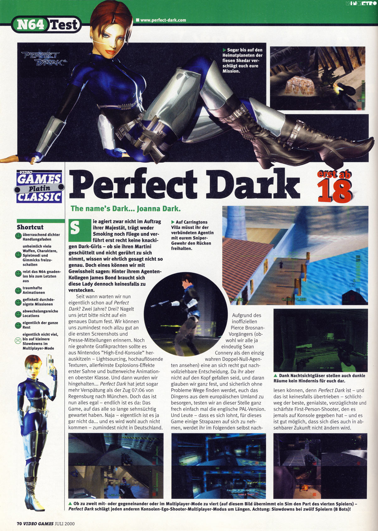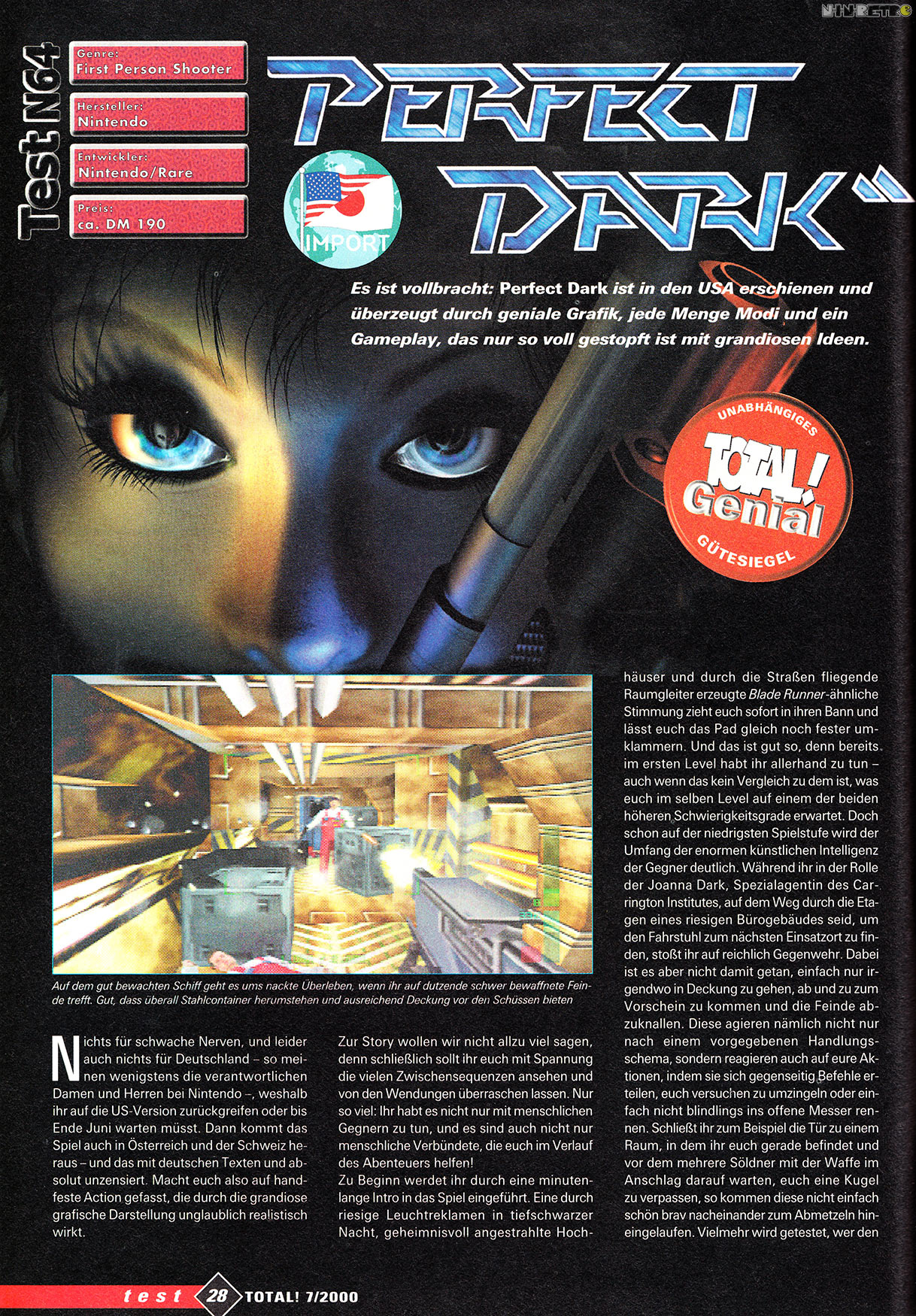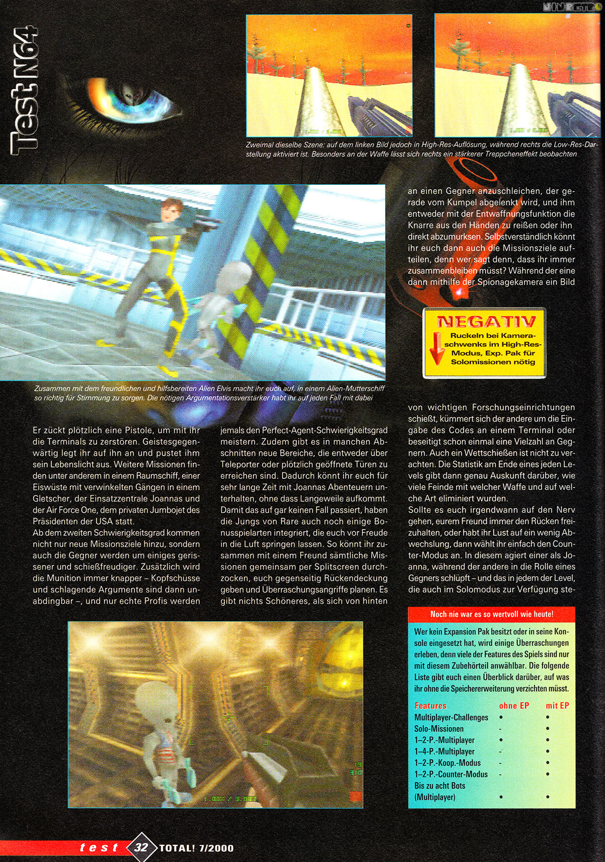 Generelles Problem vielleicht. Kam etwas zu spät raus (wir reden von 2000) und das N64 kam zu oft an seine Grenzen. Trtozdem: ein ganz famoser Auftritt. Hätte vielleicht etwas mehr Cyberpunkt und weniger Roswell vertragen... Aber trotzdem ein ganz großer Titel, siehe mein Kommentar unten.