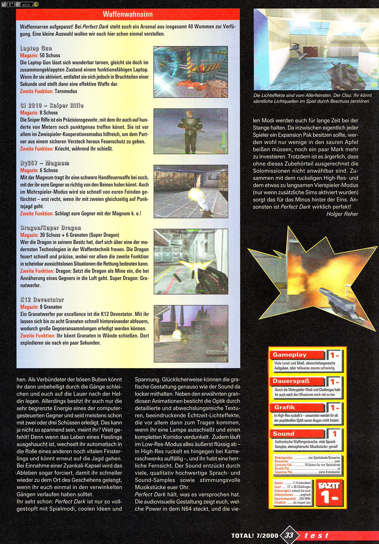 Was mir übrigens gehörig auf die Nerven gegangen ist, ist dieses ständige "Joanna-Dark-Posing". Dieses "Das-ist-die-neue-Lara-Croft" mit Starschnitt-Render-Postern... Das war irgendwie 2000 schon antiquiert...