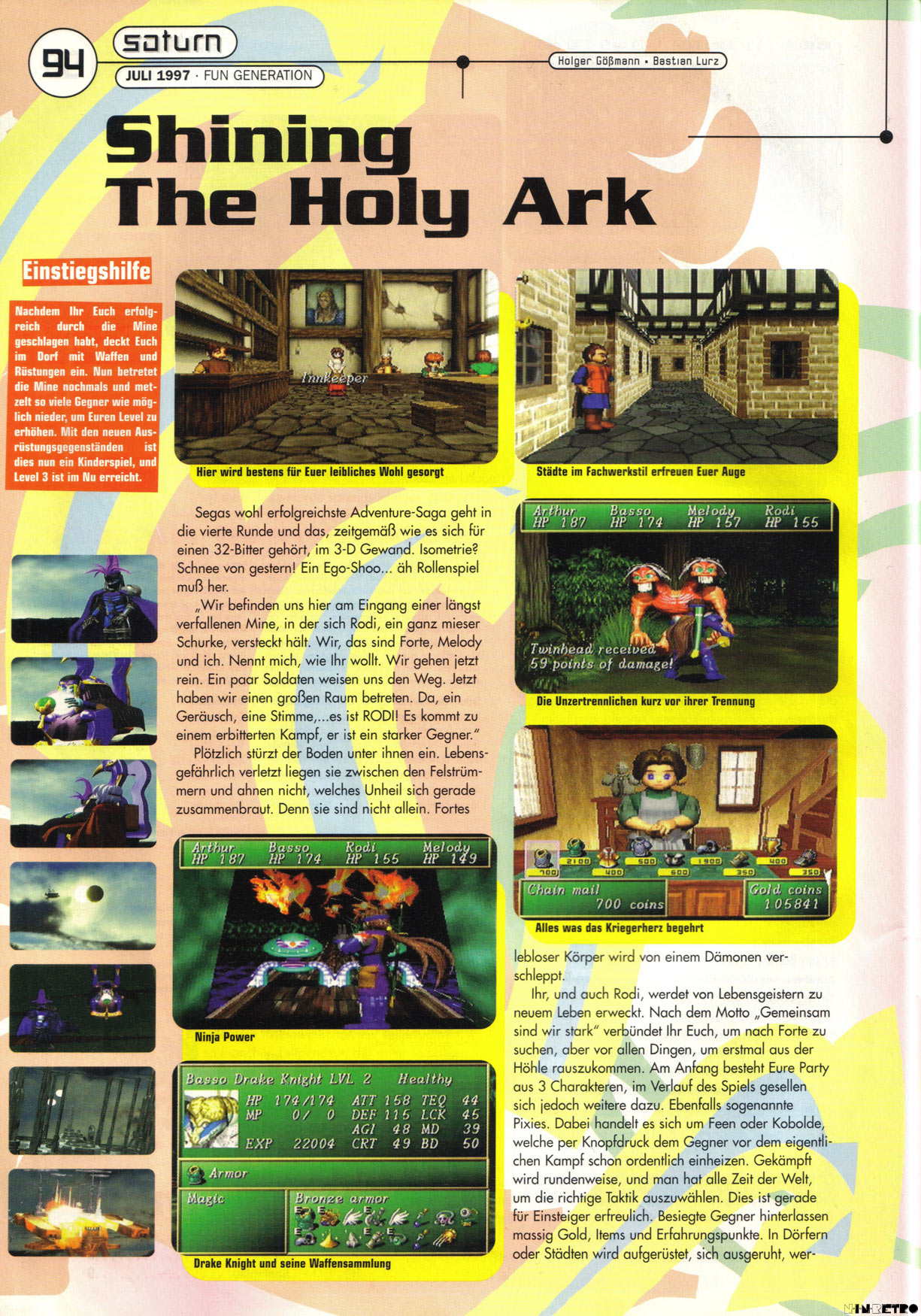 Die Schöpfer der legendären "Shining"-Serie, Team Sonic, präsentieren das größte Abenteuer ihrer Laufbahn. Ein packendes Epos, in dem Gut und Böse aufeinanderprallen. Ein gigantisches Mysterium in excellenter 3D-Grafik mit atemberaubenden Kampfsequenzen und endlosen Rätseln. Die neue Dimension des Abenteuers für alle SATURN-Besitzer!