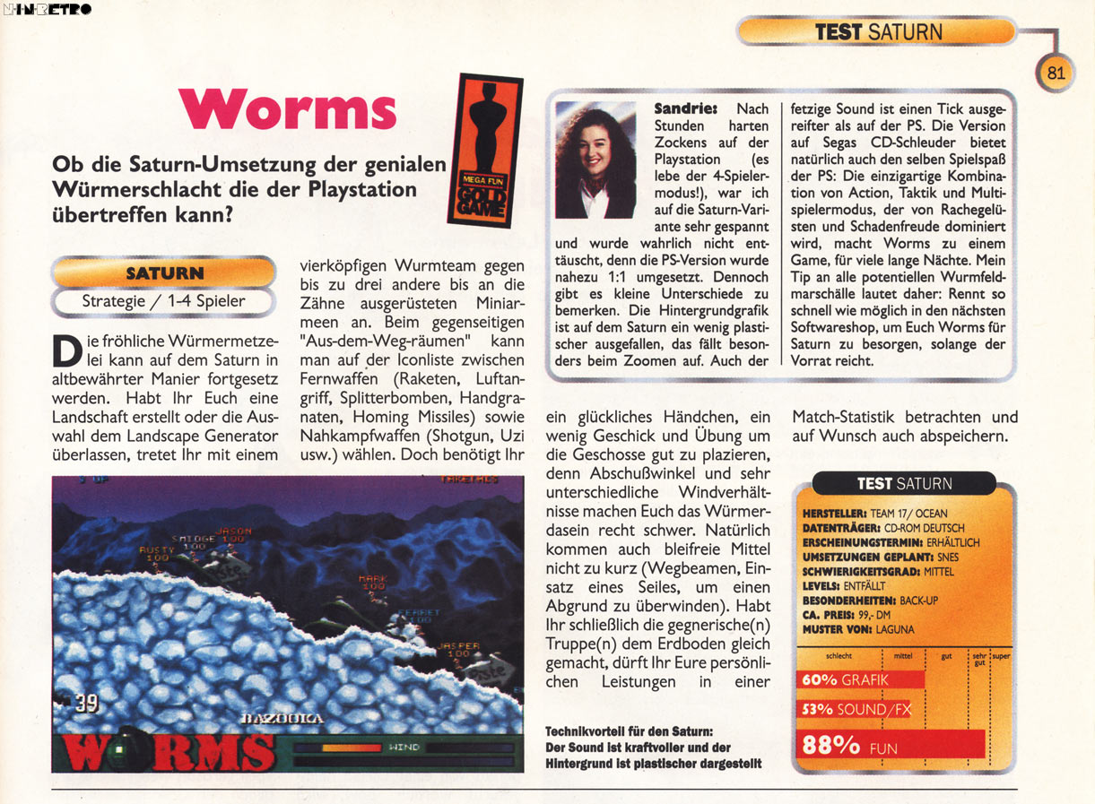 Laß Deine Freunde in den Tiefen der Marsbrühe versinken oder laß sie in den Lavagruben des Hades schmoren. Bring Deine Schlauheit ein in den absoluten Mißbrauch von Strategie und Anstand des am meisten süchtig machenden Spiels aller Zeiten, das Würmer heißt!