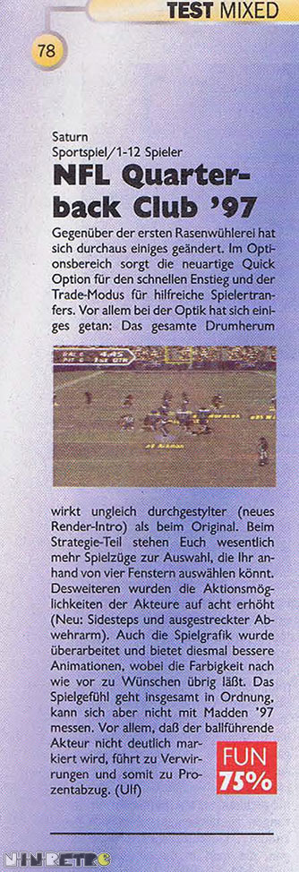 "Acclaim's developers have gone the extra nine yards to make this the football game to have... it looks like we may have another Monster of the Gridiron!" - Video Games