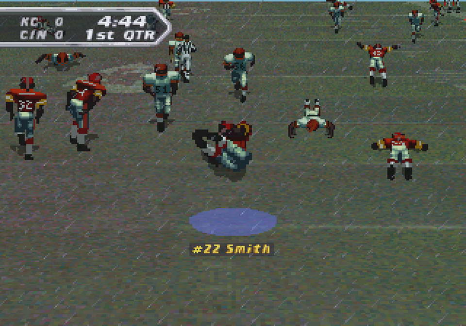 NEW ANIMATIONS INCLUDE LATERALS AND OPTIONS. PLAYERS FEATURE UNIFORM #'S, HELMET LOGOS, AND NAMEPLATES. BUILD THE PERFECT TEAM THROUGH PLAYER TRADES. INSTANT REPLY FROM ANY CAMERA ANGLE. WEATHER AFFECTS PLAYER MOBILITY AND FIELD CONDITIONS.