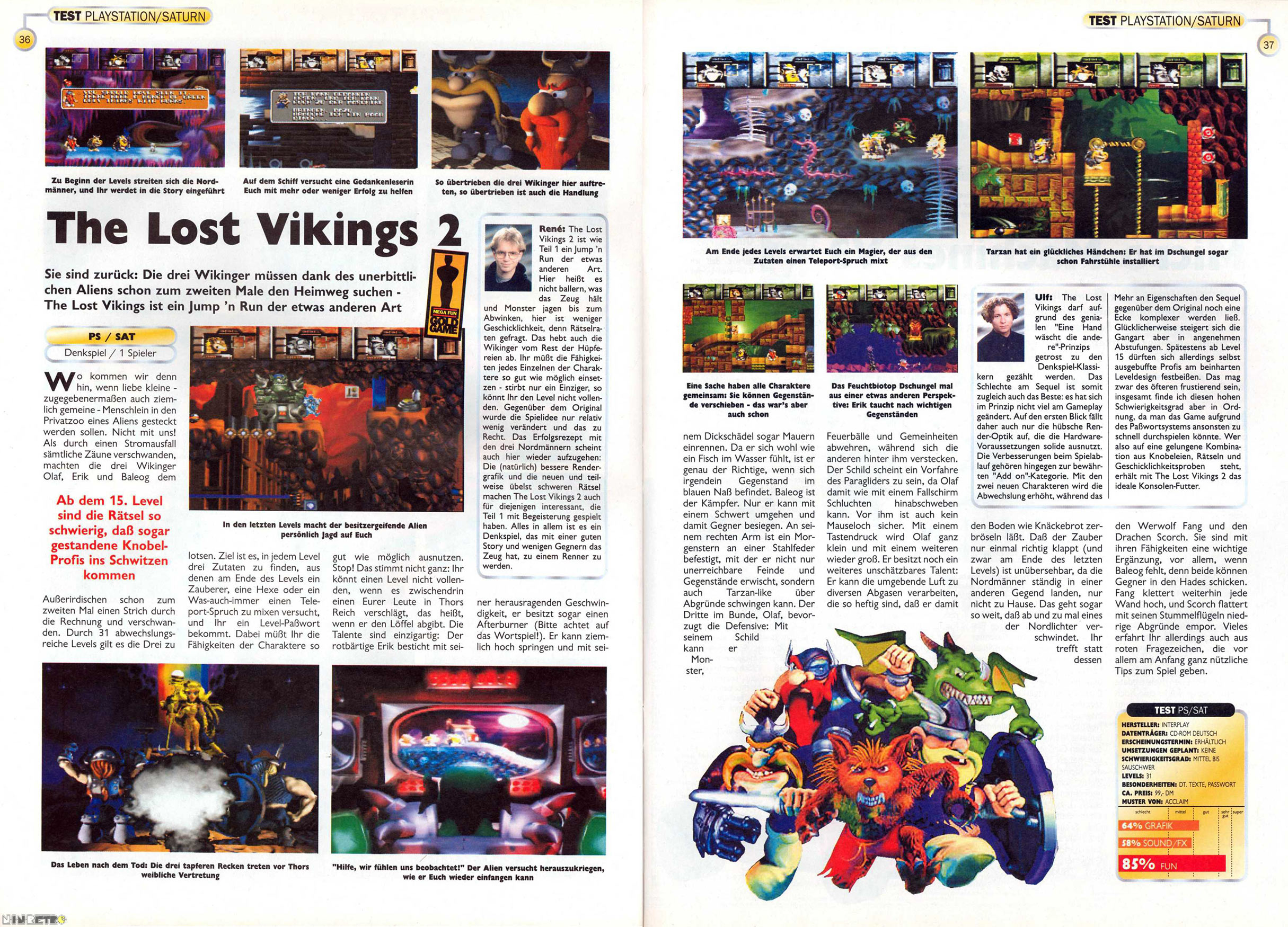 War dann wohl der Versuch, den Titel grafisch etwas mehr "32-Bit-würdig" aufzumotzen. Wobei so eine Renderoptik auf dem SNES, wenn vielleicht nicht 100%ig in der Qualität, auch sicher möglich gewesen wäre, sofern diese überhaupt über dem Niveau der Donkey Kong Country-Spiele ist. Ich frage mich nur ob es nicht geschickter gewesen wäre, gleich Lost Vikings 3 zu machen. Die Grafiken und die Zwischensequenzen wurde sowieso für die 32-Bit-Konsolen neu gemacht, da hätte man dann gleich das Leveldesign komplett neue gestalten können und fertig wäre Teil 3 gewesen. Hätte man für das Remake von Teil 2 (sowas in der Art ist die Fassung hier ja eigentlich ist) neue hangezeichnete Grafik genommen, mit höherer Auflösung als bei der Originalversion, hätte das sicher schöner gewirkt.