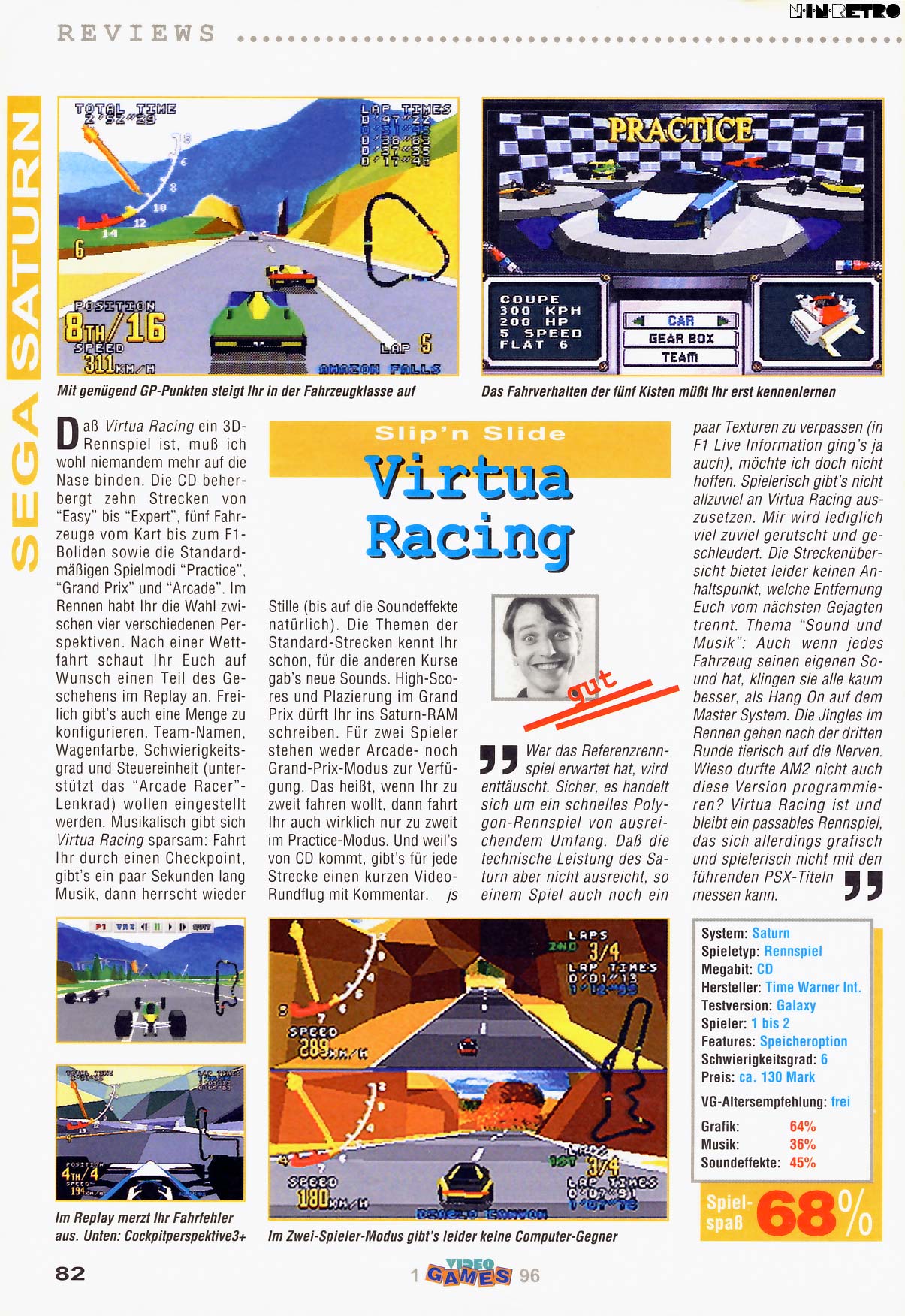 You know about the 10 different tracks (seven more created just for Saturn drivers!). The new vehicles (yes, a Go-Kart). Grand Prix Mode (15 teams to face, five cars to race - better practice). Next generation cinematics (you definitely won't find this anywhere else!). Split screen mode (yeeeehawww!!!)...
