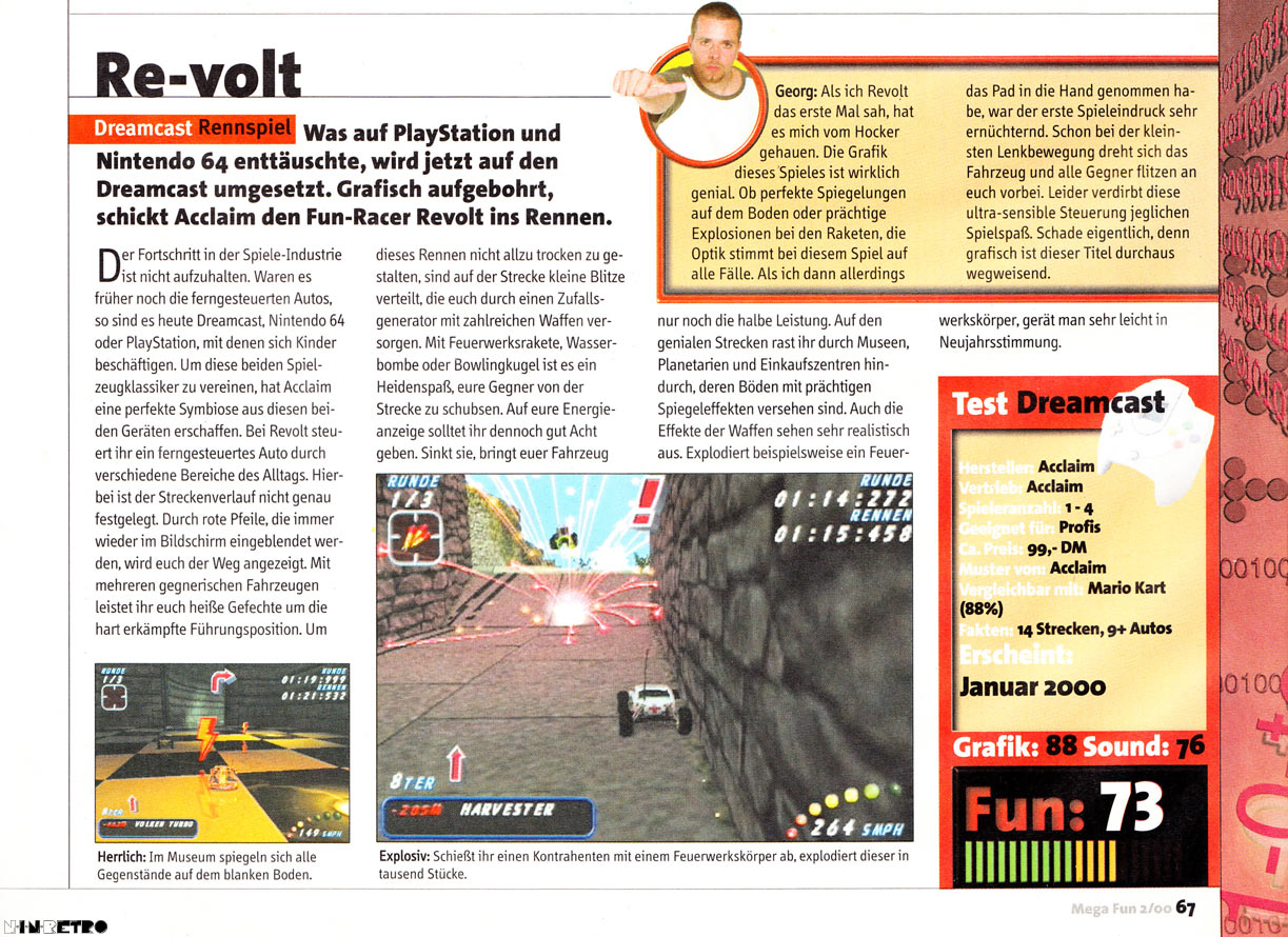 Ich vermute, das lag damals daran, dass die VG in Ausgabe 10/99 bereits die N64- und in Ausgabe 11/99 die PSX-Version getestet hatten. Wahrscheinlich wollte man dann keine ganze Seite mehr für das DC-Review verwenden, obwohl diese deutlich besser abschnitt als die anderen Umsetzungen. Ist aber nicht ungewöhnlich bei der VG, dass ein späterer Port einen kürzeren Testbericht bekommt, wenn frühere Versionen schon mal in einen längeren Artikel besprochen wurden.