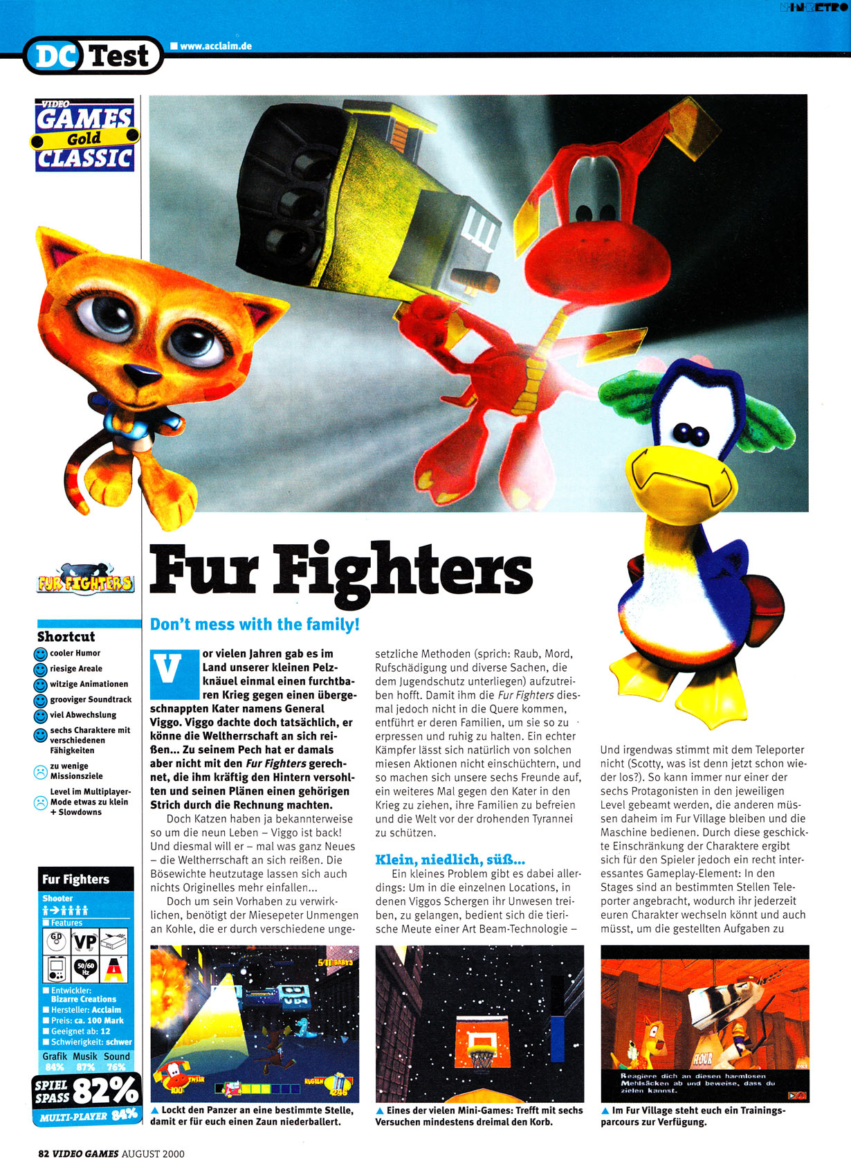 "Fur Fighters could very well be the Sleeper Hit of the Year! - Segadreamcast.net "One of the most unique and playable titles the Dreamcast has seen" - Gamer's Republic "Easily one of Dreamcast's top titles" - ign.com