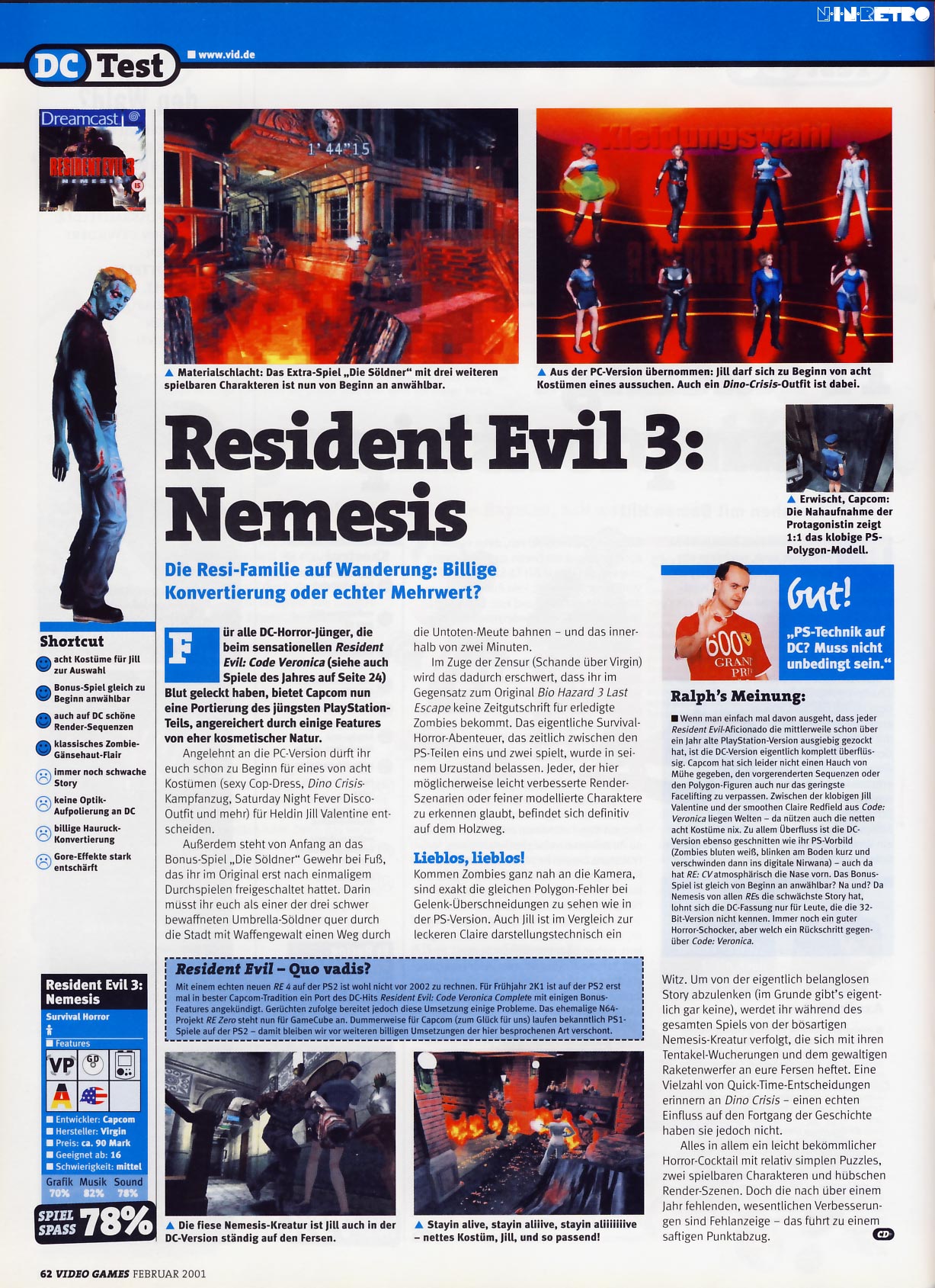 Das neuste Kapitel der beliebten Horror-Serie jetzt endlich auch auf der Dreamcast. Begleiten Sie Jill Valentine - die Heldin aus Resident Evil - bei ihrer Flucht aus Raccoon City... In diesem nervenzerreißenden Alptraum erfahren Sie mehr über die düstere Geschichte der Umbrella Corporation. Erleben Sie die Stunden vor den dramatischen Ereignissen aus Resident Evil 2.
