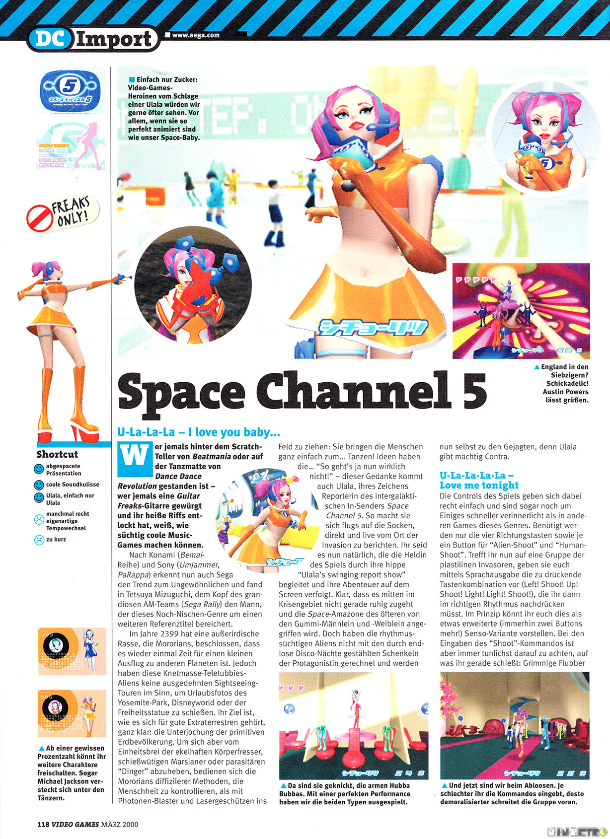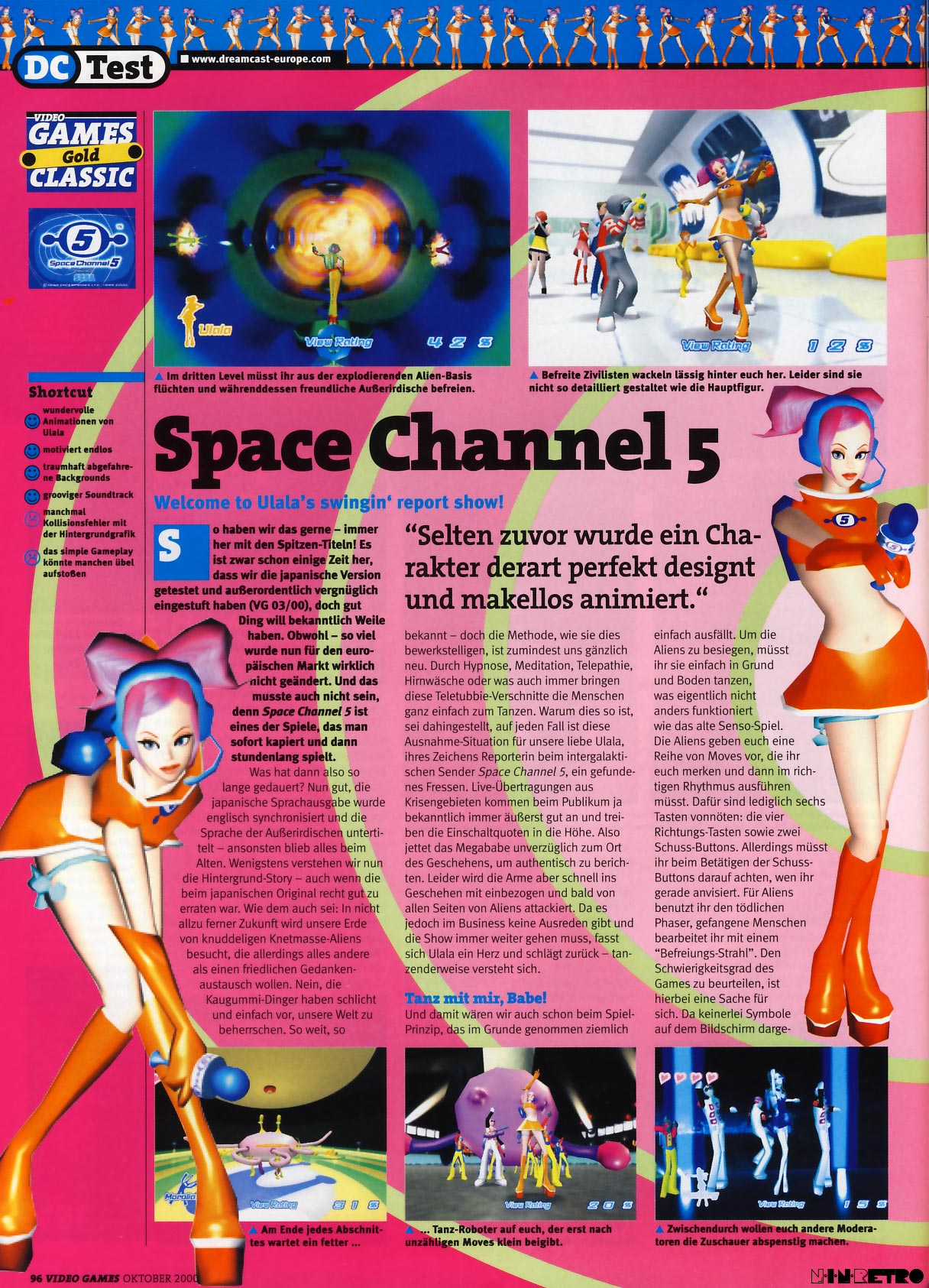 Lass dich mitreißen von Ulala, der Space-Göttin und TV-Diva! Tanz die fiesen, aber funky Aliens in Grund und Boden, befreie ihre tanzenden Geiseln - und treibe die Einschaltquoten für Ulalas Sender in den siebten Himmel... "Space Channel 5" ist eine Mischung aus Adventure, Musik und Action mit einer hippen Prima Ballerina, die die Herzen aller Spieler schneller schlagen lässt. "Space Channel 5" bietet fesselndes Gameplay, einzigartige Figuren und umwerfende Optik - wer kann dazu schon nein sagen? The rhytm's gonna get ya!