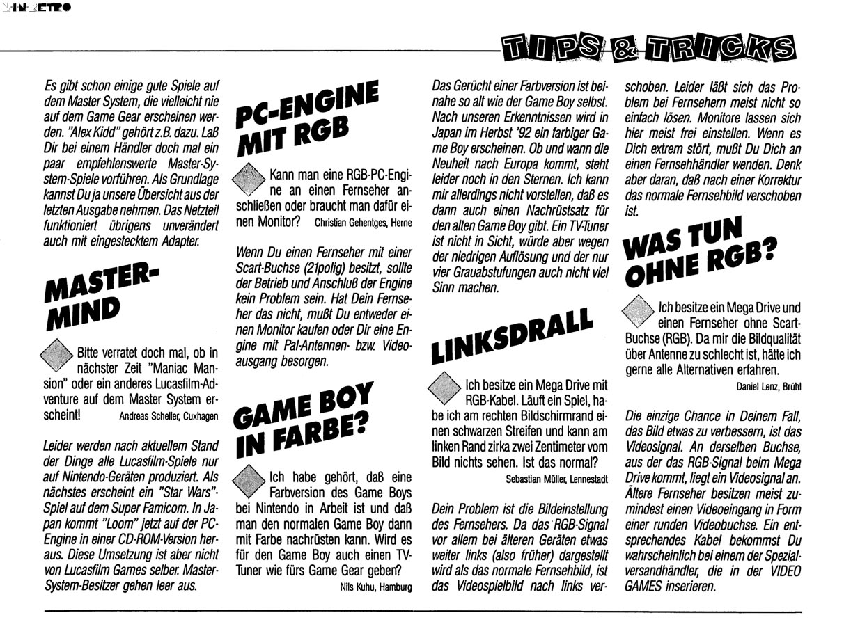 Es werden nur Beiträge zu Konsolenthemen gelistet die für N.i.n.Retro eine Relevanz haben. Reviews sowie Berichte zu Computerspiele, oder Konsolensysteme die nicht auf dieser Internetseite gelistet sind, werden nicht berücksichtigt sofern diese in der jeweiligen Ausgabe vorhanden sind. (Betrifft zum größten Teil nur Zeitschriften die sich neben Videospiele auch mit Computersystemen beschäftigt haben.) |