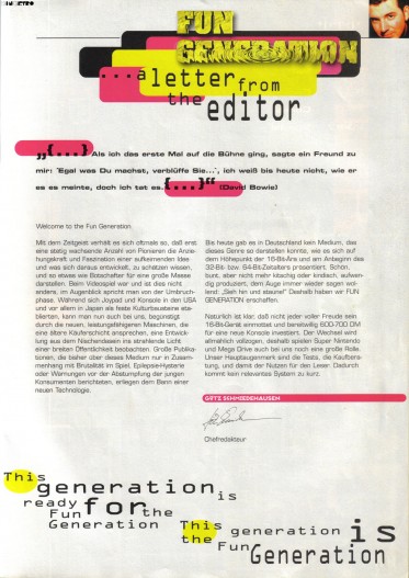 Dieses Heft war die Erstausgabe der Fun Generation. Obwohl auf dem Cover 6/95 abgedruckt ist, handelt es sich um eine Doppelausgabe für November/Dezember 1995. Nach dieser Ausgabe folgte deshalb die 1/96.